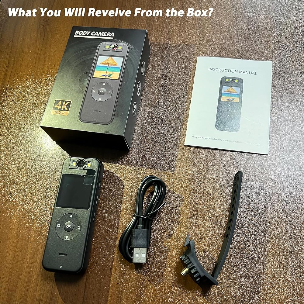 【شاشة LCD قوية للكاميرا مقاس 1.4 بوصة / وضع نقطة الاتصال】مسجل كاميرا الجسم بدقة 4K مع شاشة LED عالية الجودة مقاس 1.4 بوصة لإعادة تشغيل مقاطع الفيديو. ملائم لإعادة تشغيل اللقطات وحذفها على الفور. تم توفير قائمة مفصلة لتستخدمها. العرض مقلوب وضع تبديل الشاشة وعرض الطاقة، وتسجيل حلقة بحد أقصى 10 دقائق، وإعداد الطابع الزمني. بغض النظر عن المكان والزمان، يمكن أن يساعدك وضع Hotspot في تنزيل تسجيلاتك على هاتفك من الكاميرا. أيضًا، لا يدعم تسجيل البطاقة / عن بعد [Limte 32ft ]