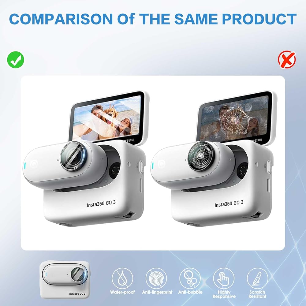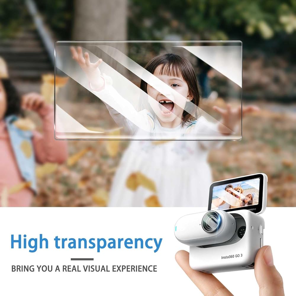 • 【شفاف بصريًا للغاية】مع نفاذية الضوء بنسبة 99.99% وطبقة مقاومة للزيوت الجزيئية AF، يوفر واقي الشاشة الزجاجي المقوى انستا 360 جو 3 دائمًا صورًا حية مع إعادة إنتاج ألوان جيدة.