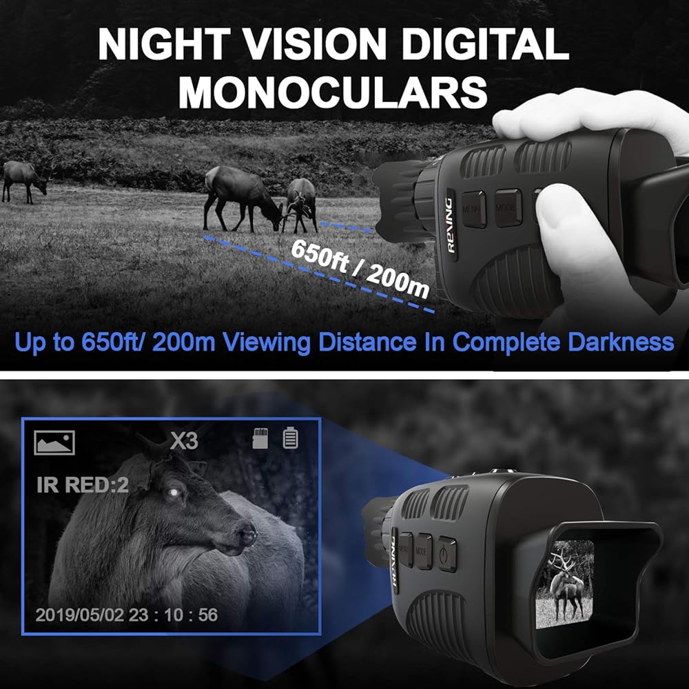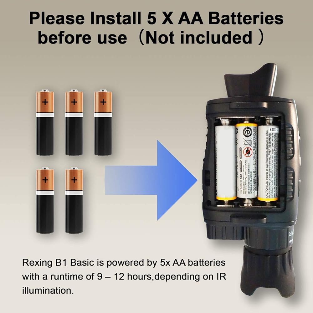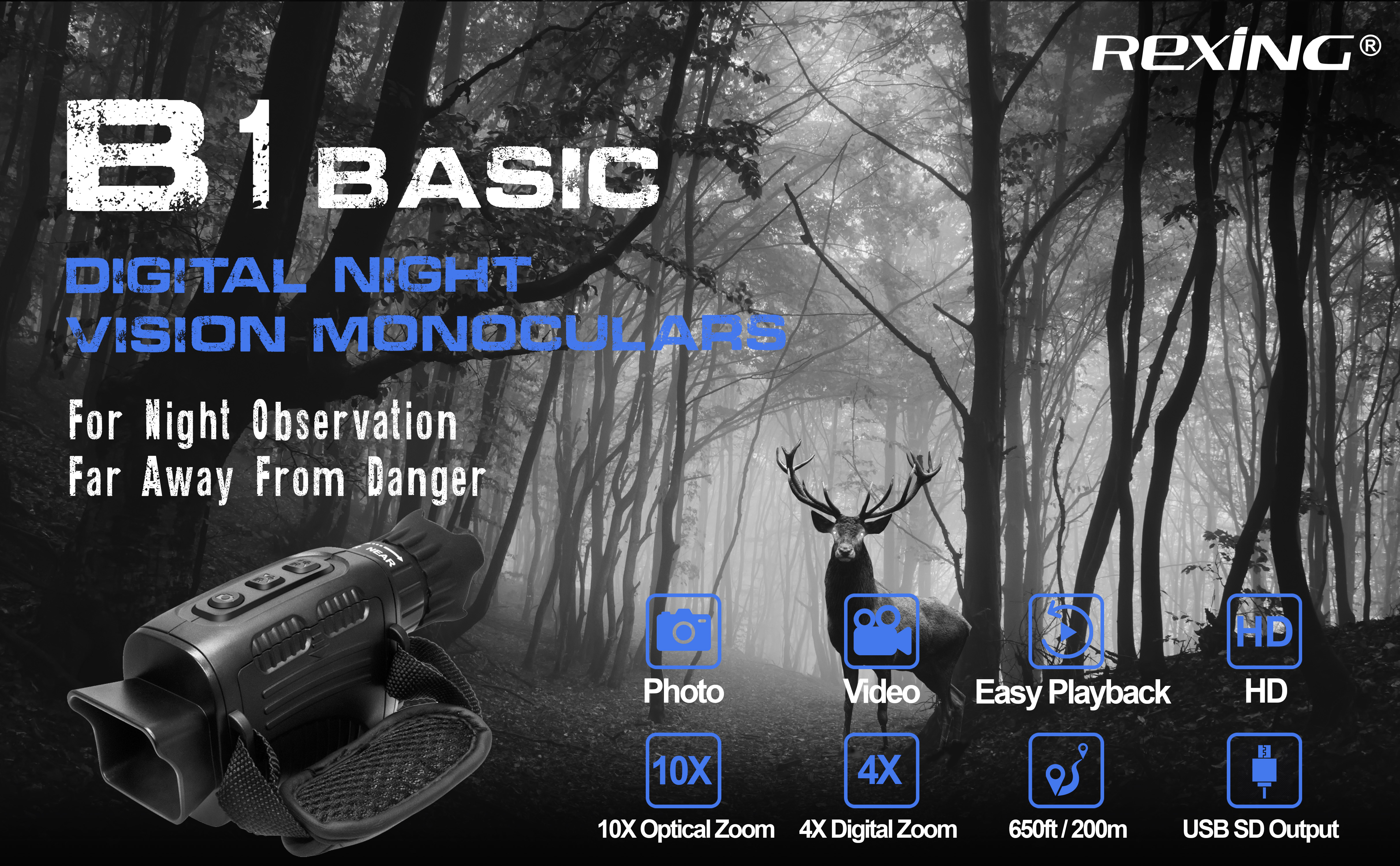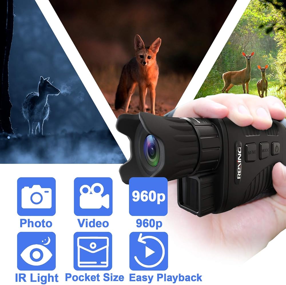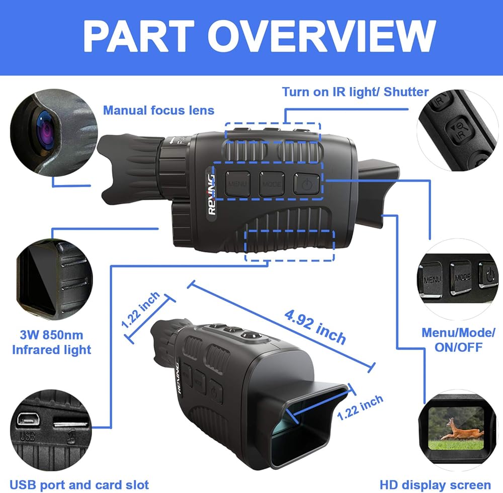 ريكسينج نظارات رؤية ليلية اساسية من بي 1 مع شاشة LCD 1.5 انش، كاميرا رقمية بالاشعة تحت الحمراء، مناظير مع صورة مزدوجة + تسجيل فيديو للصيد في الهواء الطلق والتخييم ومشاهدة الطيور والمراقبة