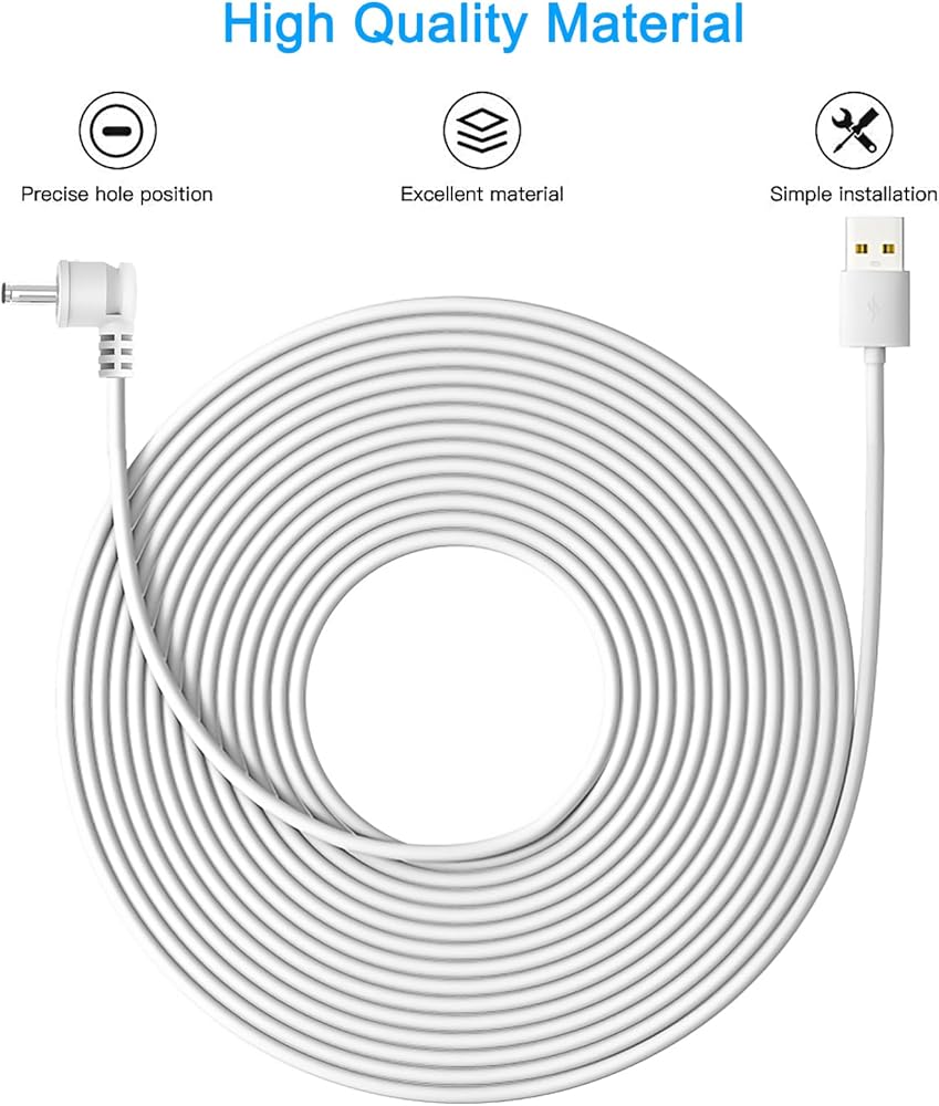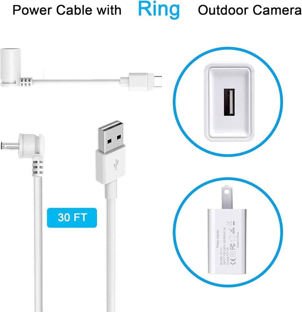 2. التكيف البسيط - كابل الشحن الخارجي DC/Type-c المقاوم للعوامل الجوية والمصمم خصيصًا لبطارية Ring Spotlight Cam Pro/Plus/Battery/Ring Stick Up Cam مصنوع من مواد متينة وعالية الجودة، مما يجعله أفضل رفيق شحن لـ Ring الأجهزة.