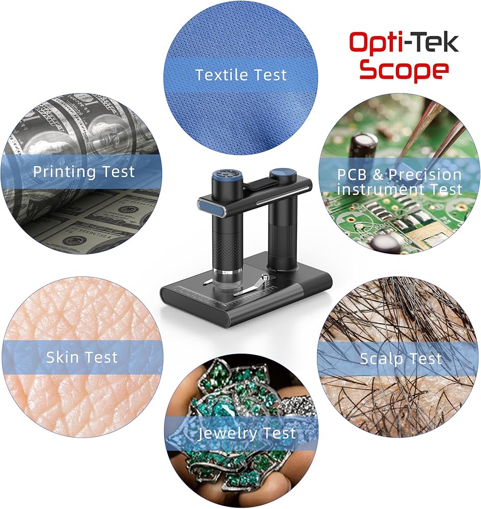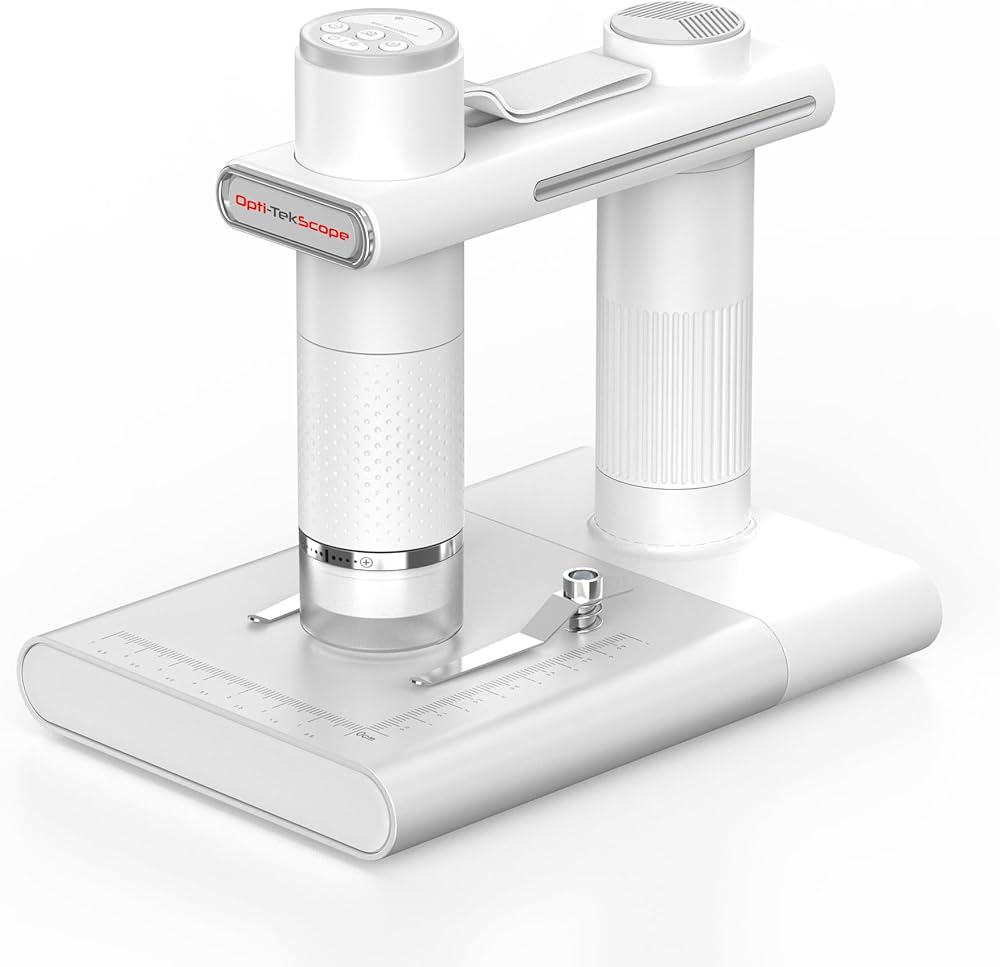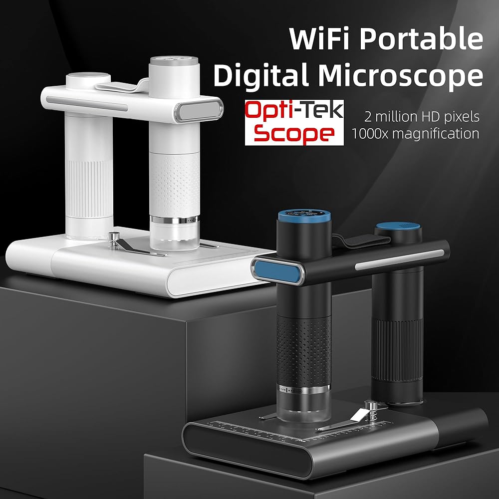 Opti-Tekscope OT-WiFi: كاميرا مجهرية رقمية عالية الدقة لاسلكية - تكبير 50-1000X، وضوح 2 مليون بكسل، التحكم في تطبيق iOS/Android، إضاءة LED رائعة، متوافقة مع أجهزة الكمبيوتر الشخصية وأجهزة Mac (أبيض)