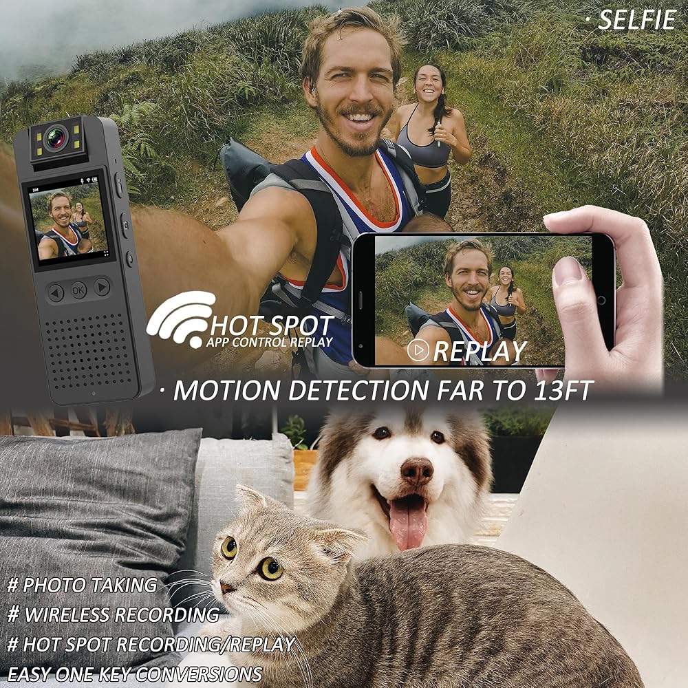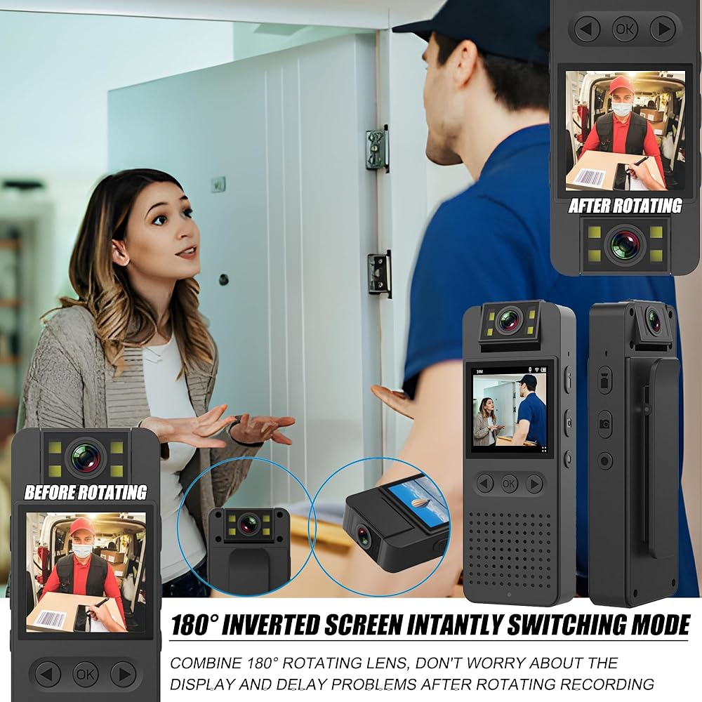 【شاشة LCD قوية لكاميرا الجسم مقاس 1.4 بوصة】يمكن إعادة تشغيل كاميرا الجسم مع تسجيل 1080 بكسل من خلال شاشة LED عالية الجودة مقاس 1.4 بوصة. تأكد من دقة زاوية التسجيل المباشر، وسهل إعادة تشغيل اللقطات وحذفها على الفور بدون كمبيوتر محمول/هاتف محمول / الكمبيوتر الشخصي. قائمة مفصلة لك للتبديل، من السهل جدًا التحكم في كاميرا الجسم. تقدم شاشة مقلوبة 180 درجة تبديل الوضع على الفور [بدون تأخير]، دعم عرض الطاقة، طول تسجيل الحلقة اختر في 3/5/10 دقائق، مجموعة طابع زمني ، وإعادة ضبط الكاميرا بسرعة.