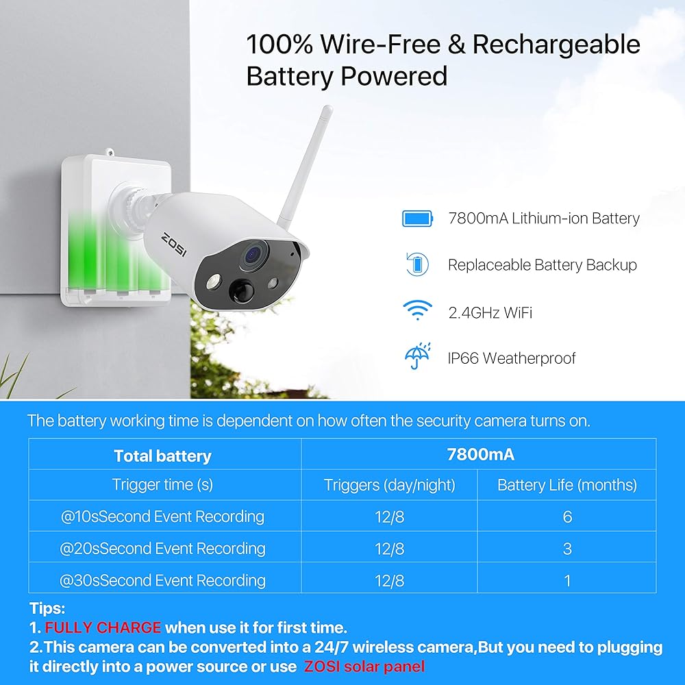 ملاحظة: هذه البطارية تنطبق فقط على الكاميرا اللاسلكية ZOSI C306/C301