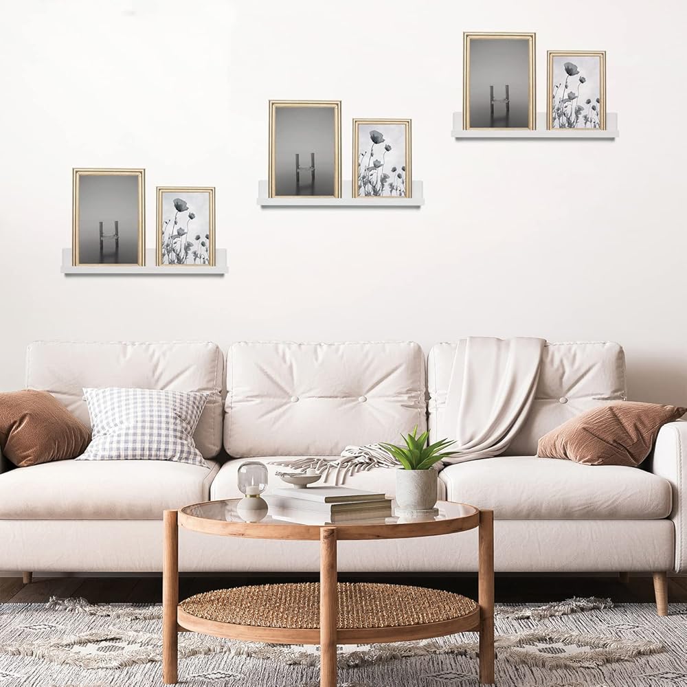 الجلاد PL3K-16-W 16 بوصة. مجموعة من 3 رفوف صور عائمة بدون مسامير، مع مجموعة موصلات (أبيض)