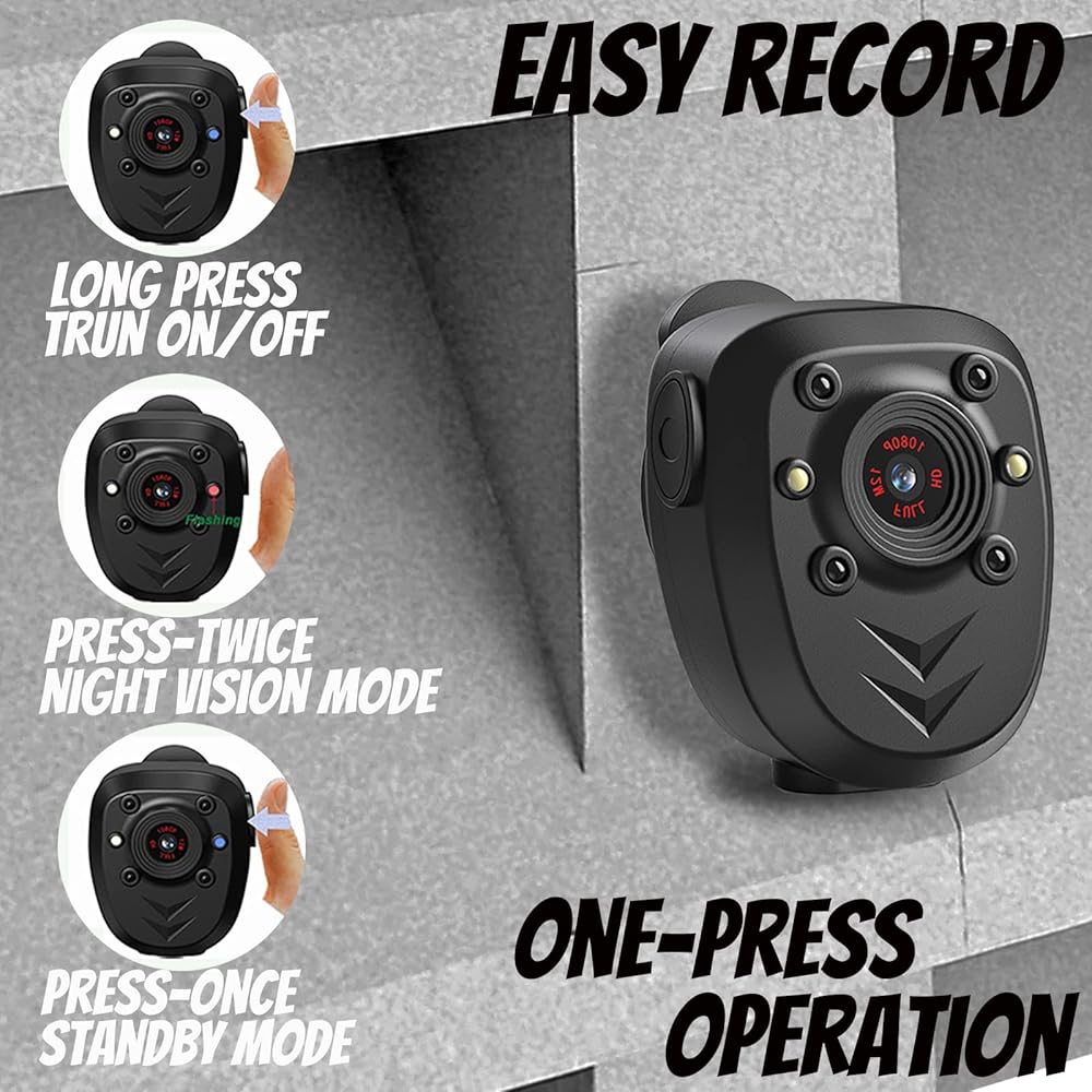 ☑ تم تعزيز الكاميرا الخارجية الصغيرة بالرؤية الليلية: هذه الكاميرا الصغيرة مناسبة للأماكن الخارجية. ارتديها لممارسة بعض الرياضات الخارجية، مثل الجري وركوب الدراجة، مما يسمح لك بالتسجيل في الظلام الدامس. تسجيل فيديو HD 1080P مذهل بمعدل 30 إطارًا في الثانية، مما يوفر لك مقاطع فيديو واضحة وطلاقة. تتميز كاميرا الجسم الشخصية هذه بعدسة بزاوية 90 درجة، حتى تتمكن أيضًا من الحصول على مجال رؤية واسع. مجهزة بـ 4 مصابيح LED بالأشعة تحت الحمراء عالية الكثافة، مسافة الرؤية الليلية تصل إلى 15 قدمًا.