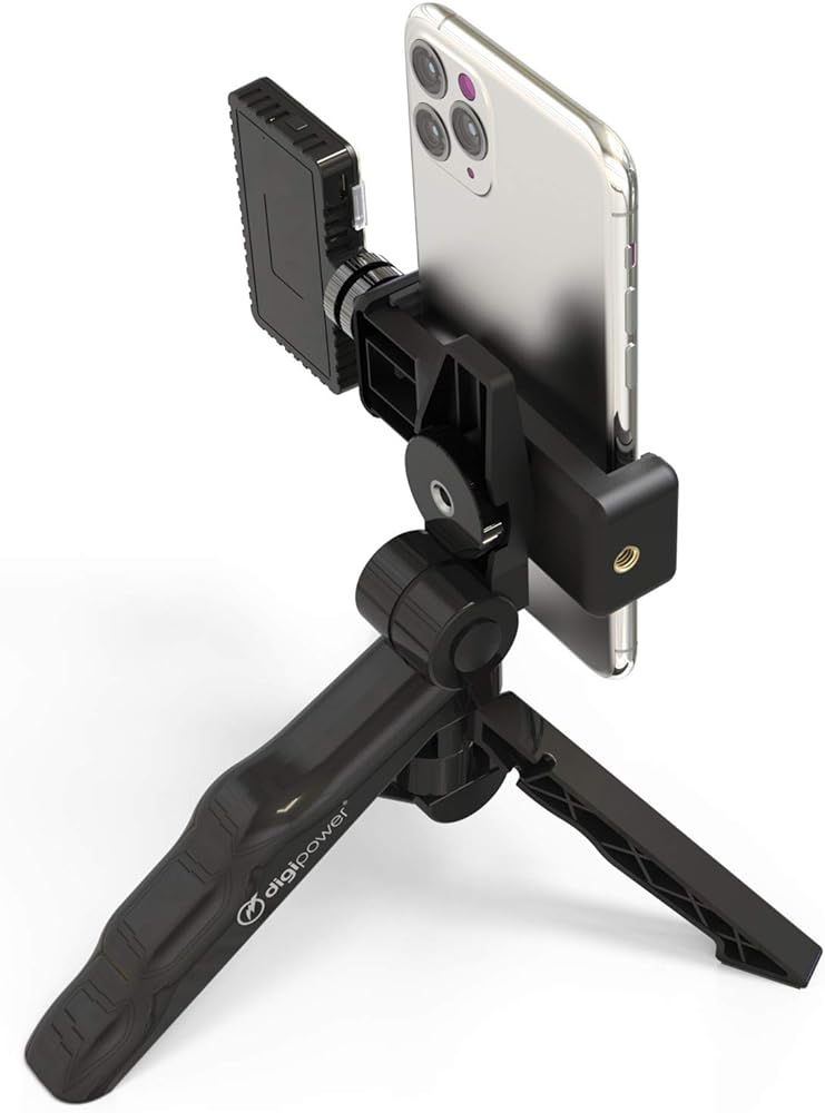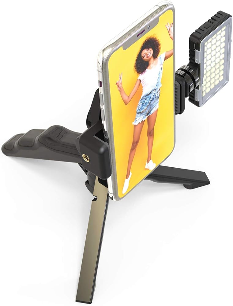 • تشتمل المجموعة على مصباح LED وحامل ثلاثي القوائم وحامل للهاتف الذكي