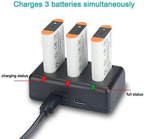 يمكن لشاحن USB ثلاثي القنوات NP-BX1 شحن 3 بطاريات في نفس الوقت: تصميم مبتكر يسمح بشحن 3 أو 2 بطاريات في نفس الوقت و3 مصابيح LED ذكية مستقلة تشير إلى اللون الأحمر عند الشحن والأخضر عند الانتهاء