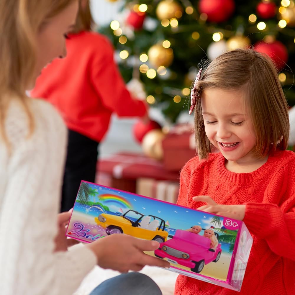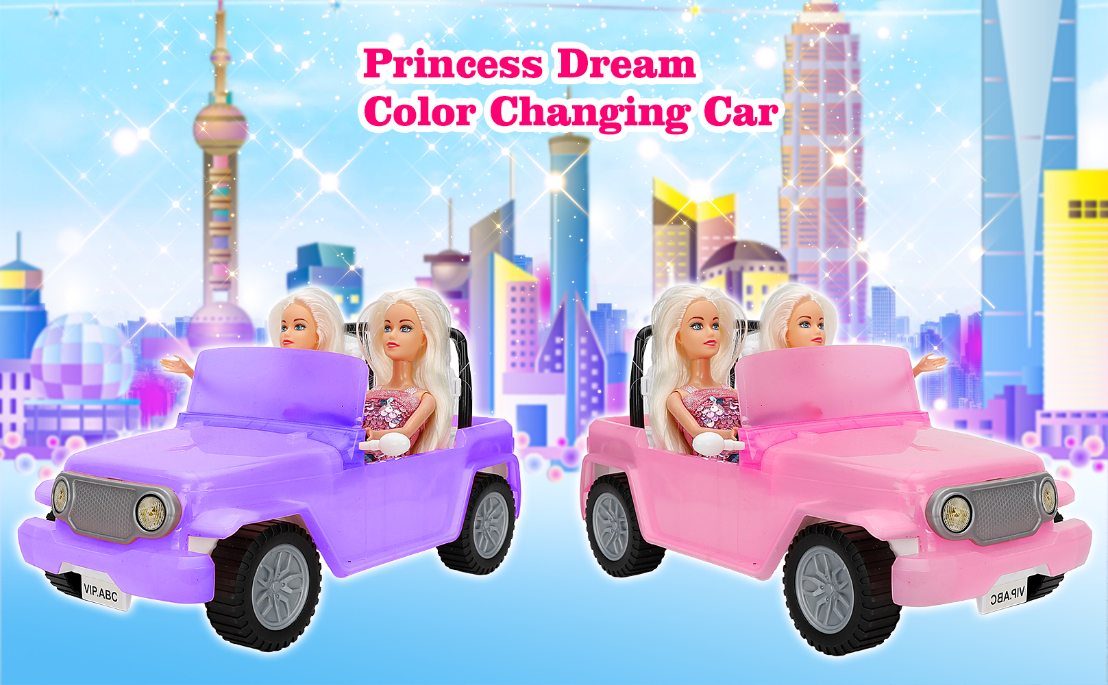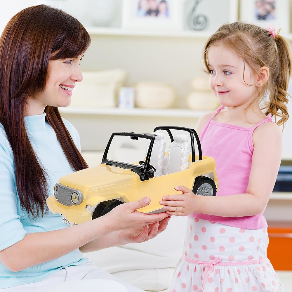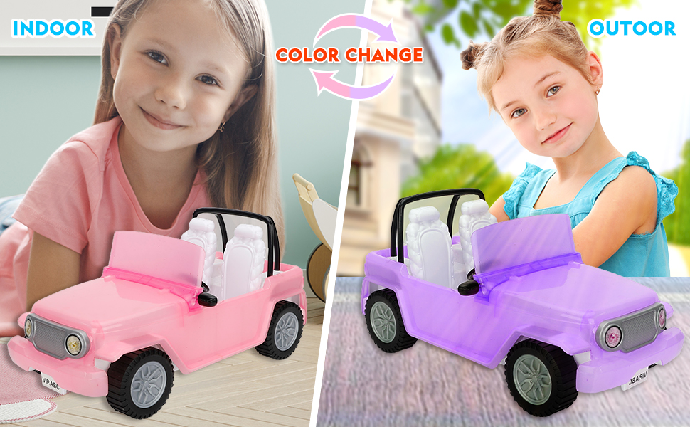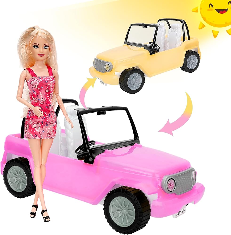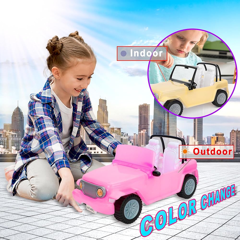 سيارة عصرية للدمى، ضوء الشمس يتغير لونها على الطرق الوعرة، سيارة دمية مع أحزمة مقاعد العمل، اللون الأصفر المتغير الوردي للأطفال، هدية مثالية للفتيات والأولاد تزيد من متعة الأطفال
