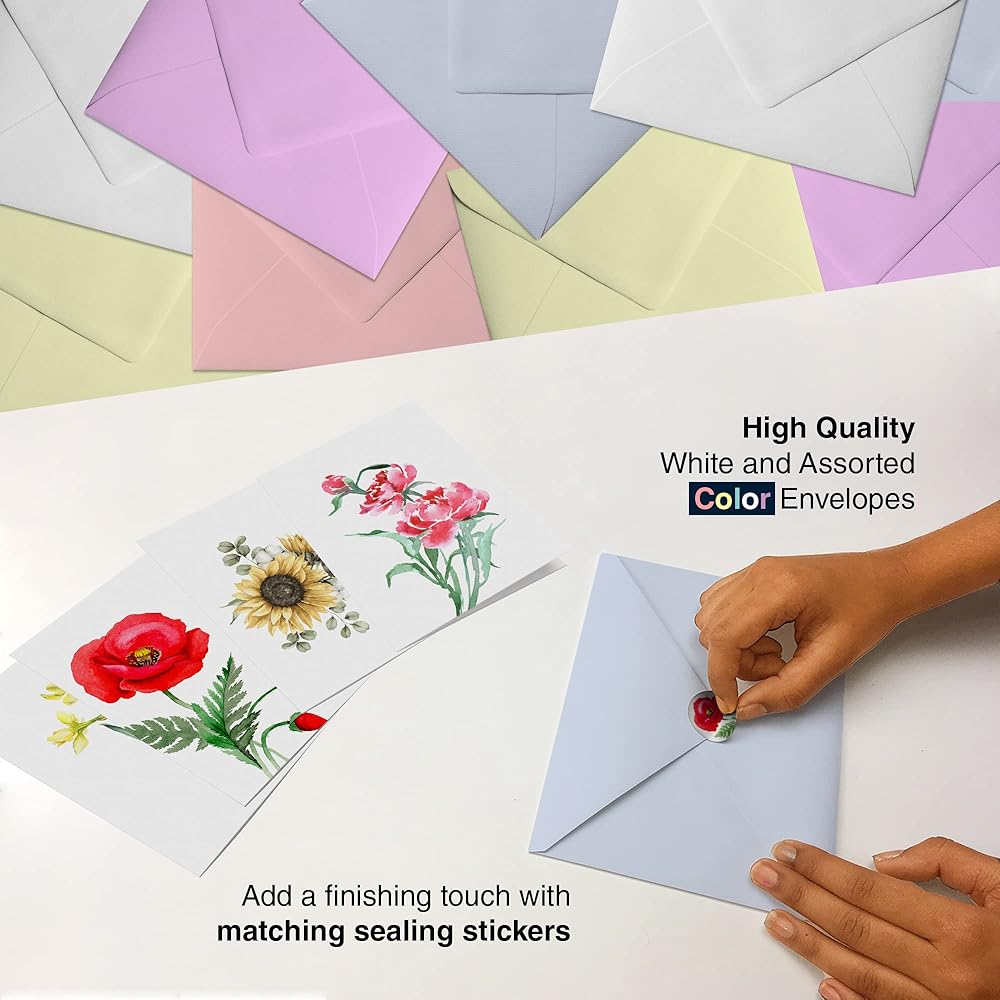 مغلفات بيضاء وملونة تُغلق بأختام ذهبية إضافية: كل صندوق من بطاقات Dessie الفارغة شكرًا لك مع الأظرف يأتي مع 100 ظرف أبيض وألوان متنوعة، مما يمنحك الفرصة لمزيد من التخصيص وجعل كل بطاقة تهنئة فريدة من نوعها مثل متلقيها . تتميز أظرفنا بجودة ممتازة وعلى الرغم من أنه يمكن إغلاقها بدون ملصقات، فقد قمنا بتضمين 100 ملصق ختم ذهبي شكرًا لك للحصول على تلك اللمسة الإضافية "الخاصة".