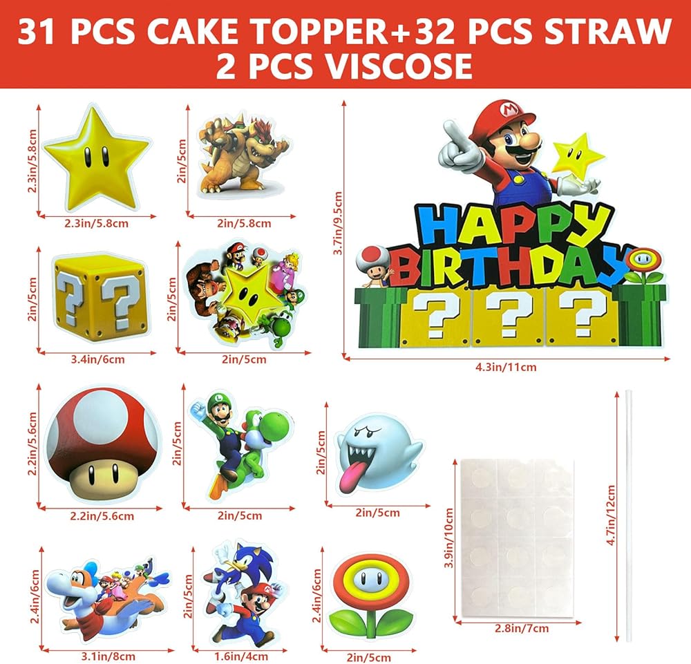 Design:Super Bros. theme birthday party decorations, suitable for various occasions, such as birthday parties, baby showers, wedding parties, anniversaries, etc. to create a happy and lively atmosphere for you.