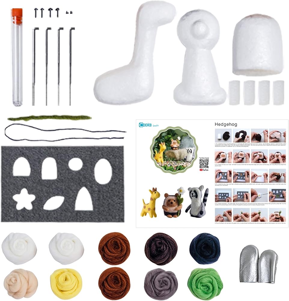 مجموعة المبتدئين في التلبيد بالإبرة - مجموعة أدوات التلبيد الصوفية للحيوانات اللطيفة، تعليمات الفنون والحرف اليدوية، مشروع عائلي مضحك سهل يتضمن 3 في 1، بداية التلبيد بإبرة الزرافة راكون القنفذ