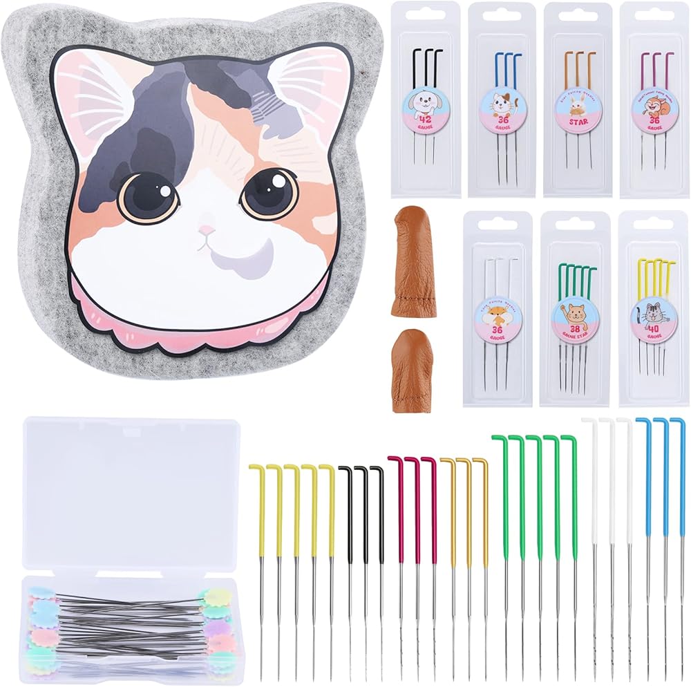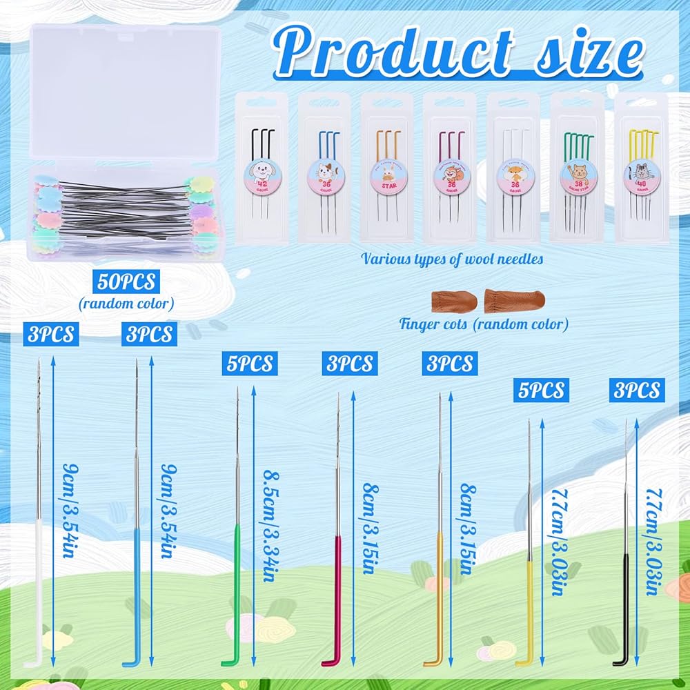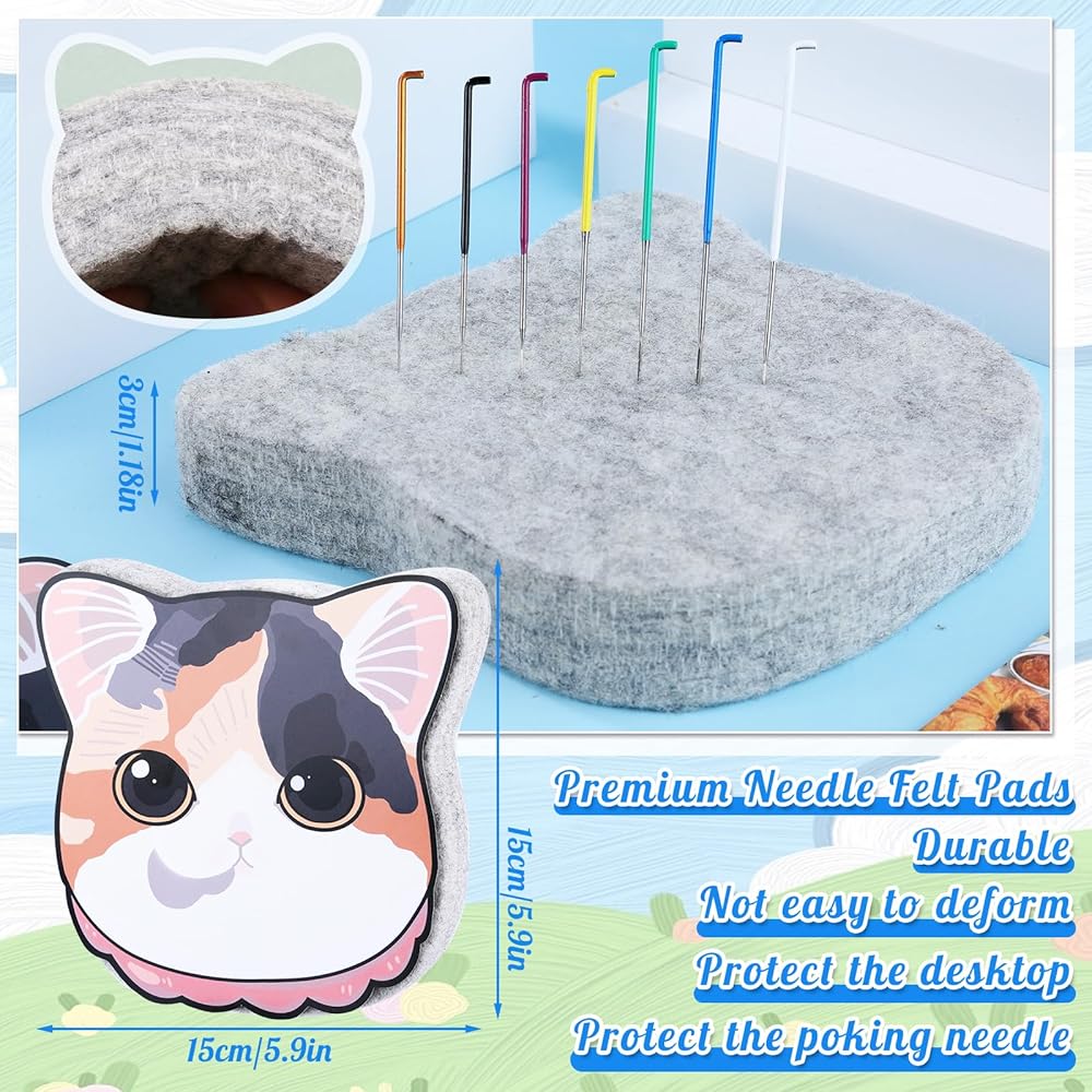 ▲مجموعة لباد إبرة عملية: إبر لباد صوف مع وسادة لباد إبرة مقاس 15 سم × 15 سم، 50 إبرة تحديد المواقع وزوج من مهود الأصابع، أدوات إبر اللباد الكاملة لتلبية أي طلباتك.