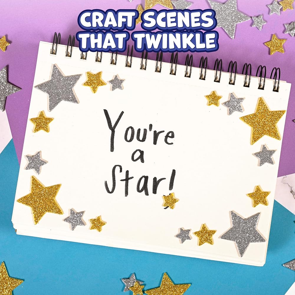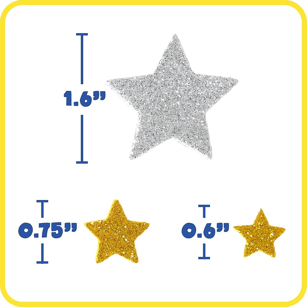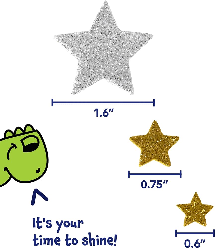 • تضفي الحيوية على أي شيء - مع التصميمات اللطيفة والألوان الزاهية والأحجام المختلفة، سيحب الأطفال التزيين بالنجوم البراقة! أضف مشاهد لامعة إلى سجل القصاصات، أو مشروع DIY، أو هدايا الحفلات أو الأعمال اليدوية.