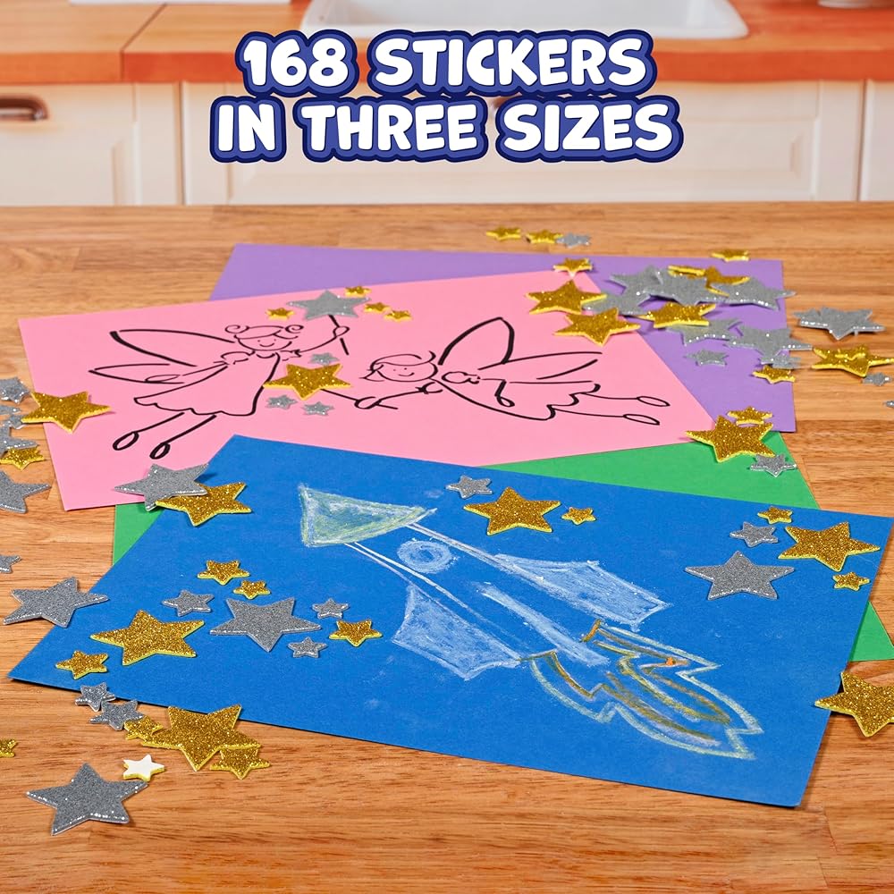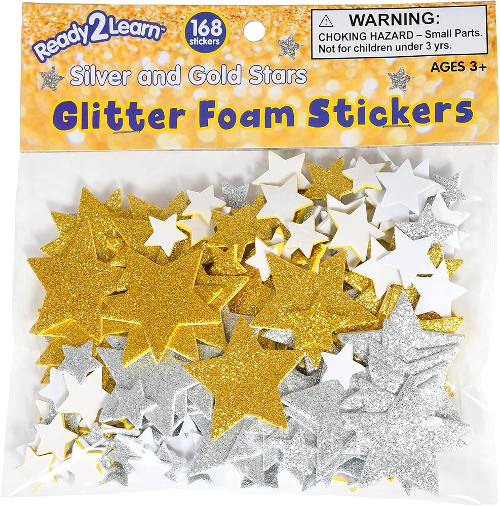 ملصقات رغوة لامعة READY 2 LEARN - نجوم فضية وذهبية - عبوة مكونة من 168 قطعة - ملصقات ذاتية اللصق - ملصقات لسجلات القصاصات والبطاقات