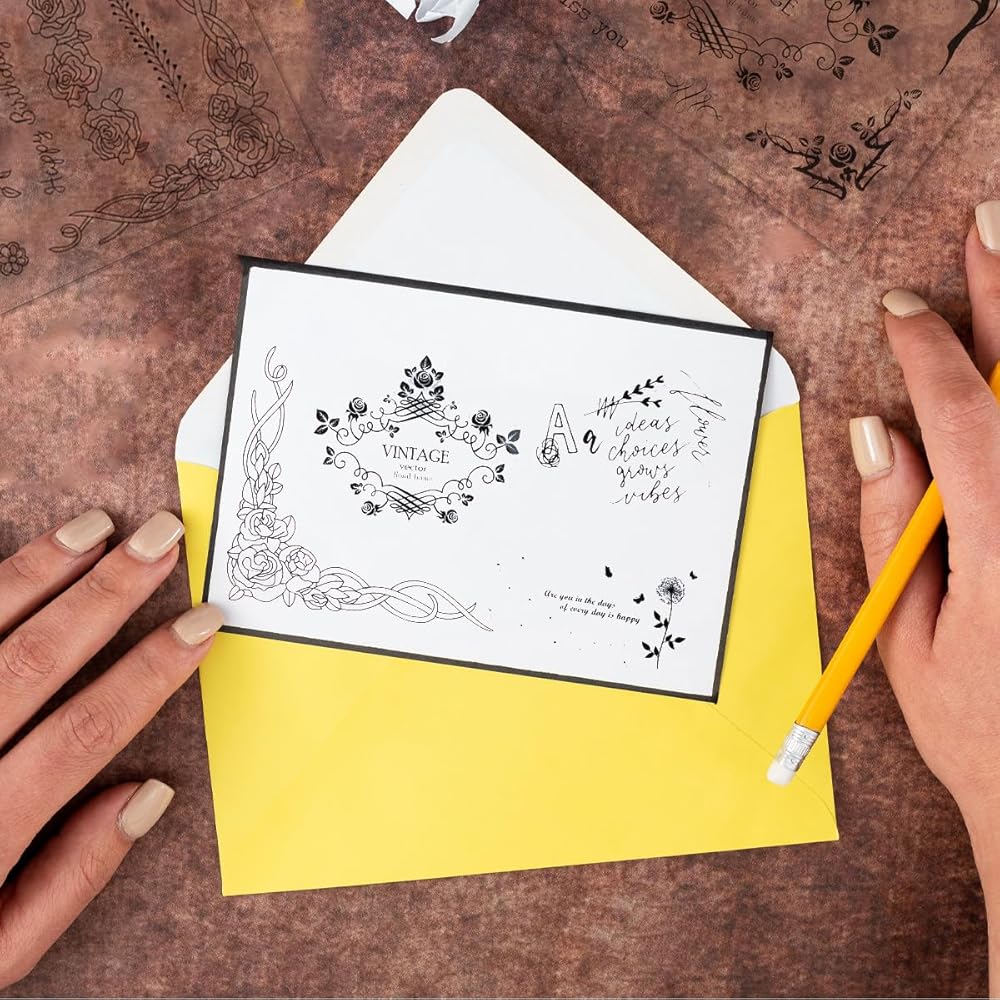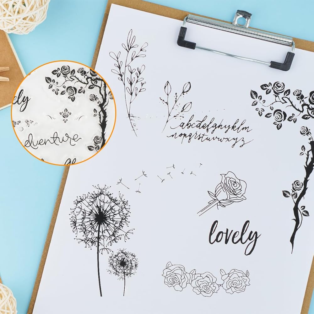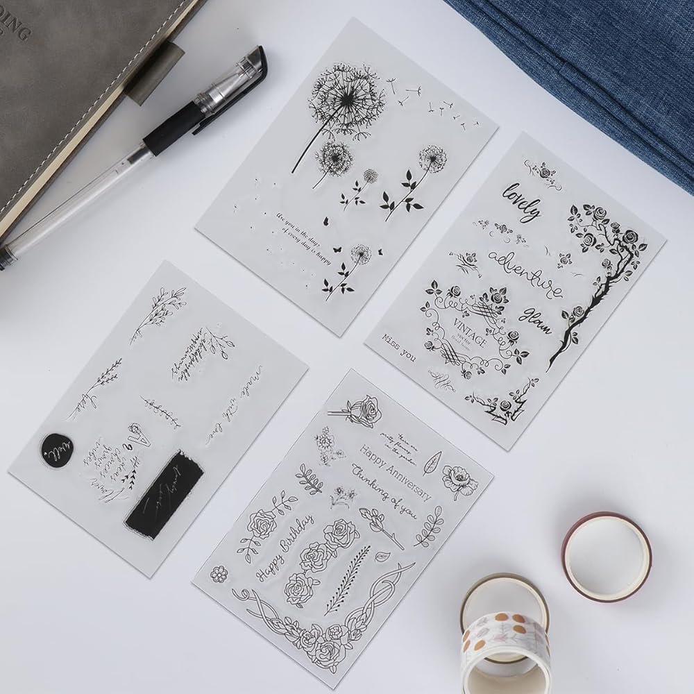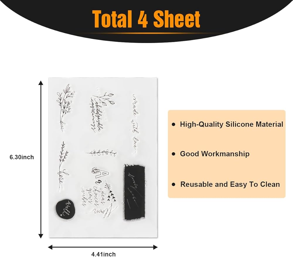 • 3.[كيفية الاستخدام] اختر الختم الشفاف الذي تريده، ثم ضع الختم على كتلة أكريليك (غير متضمنة)، اختر لوحة الحبر الملونة (غير متضمنة) التي تريدها، وقم بتلوين ختمك، ثم اطبع الختم المصبوغ على الورق أو البطاقة، ثم دعها تجف بالهواء، وأخيرًا يتم إنجاز عمل رائع.