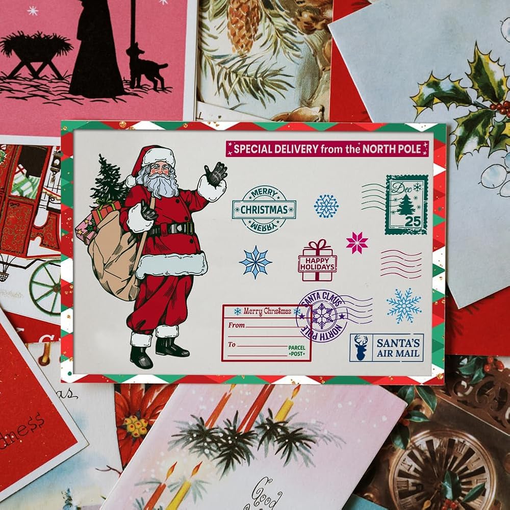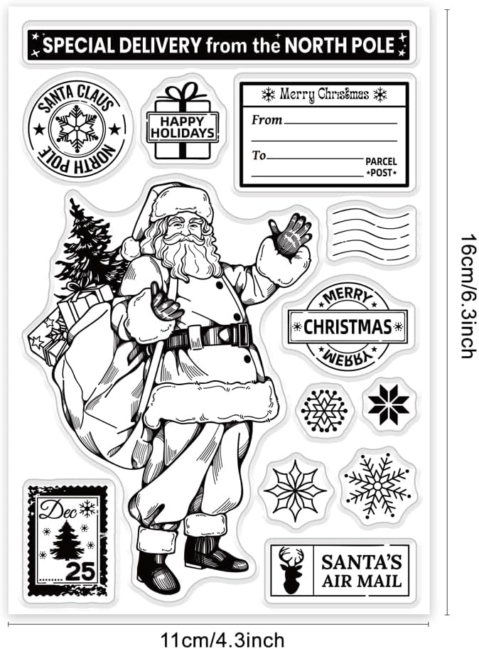 تشمل العبوة: سوف تحصل على ورقة واحدة من ختم واضح بطابع تهنئة عيد الميلاد يتضمن 10 أنماط. الحجم: 6.3 × 4.3 بوصة / 16 × 11 سم.