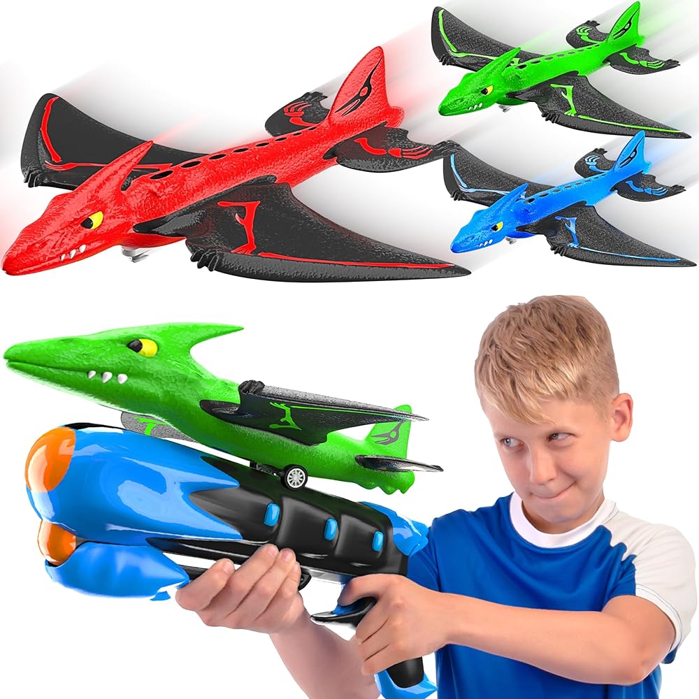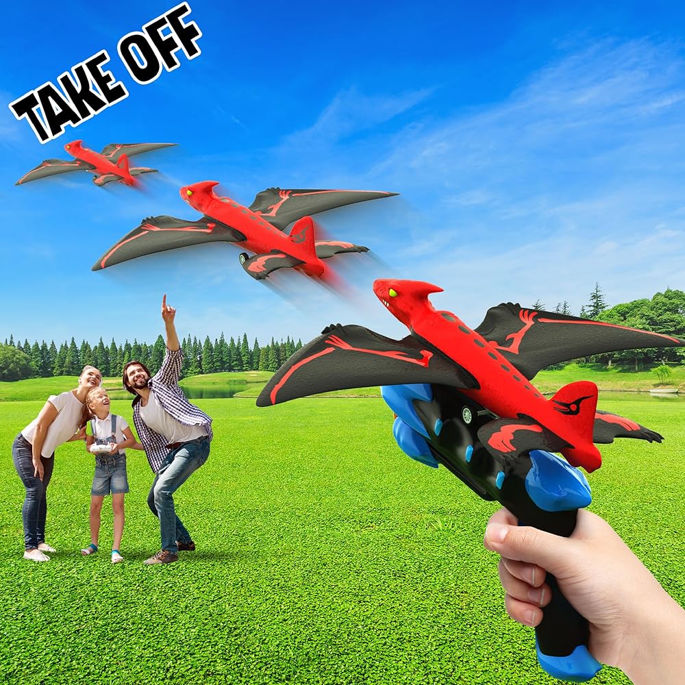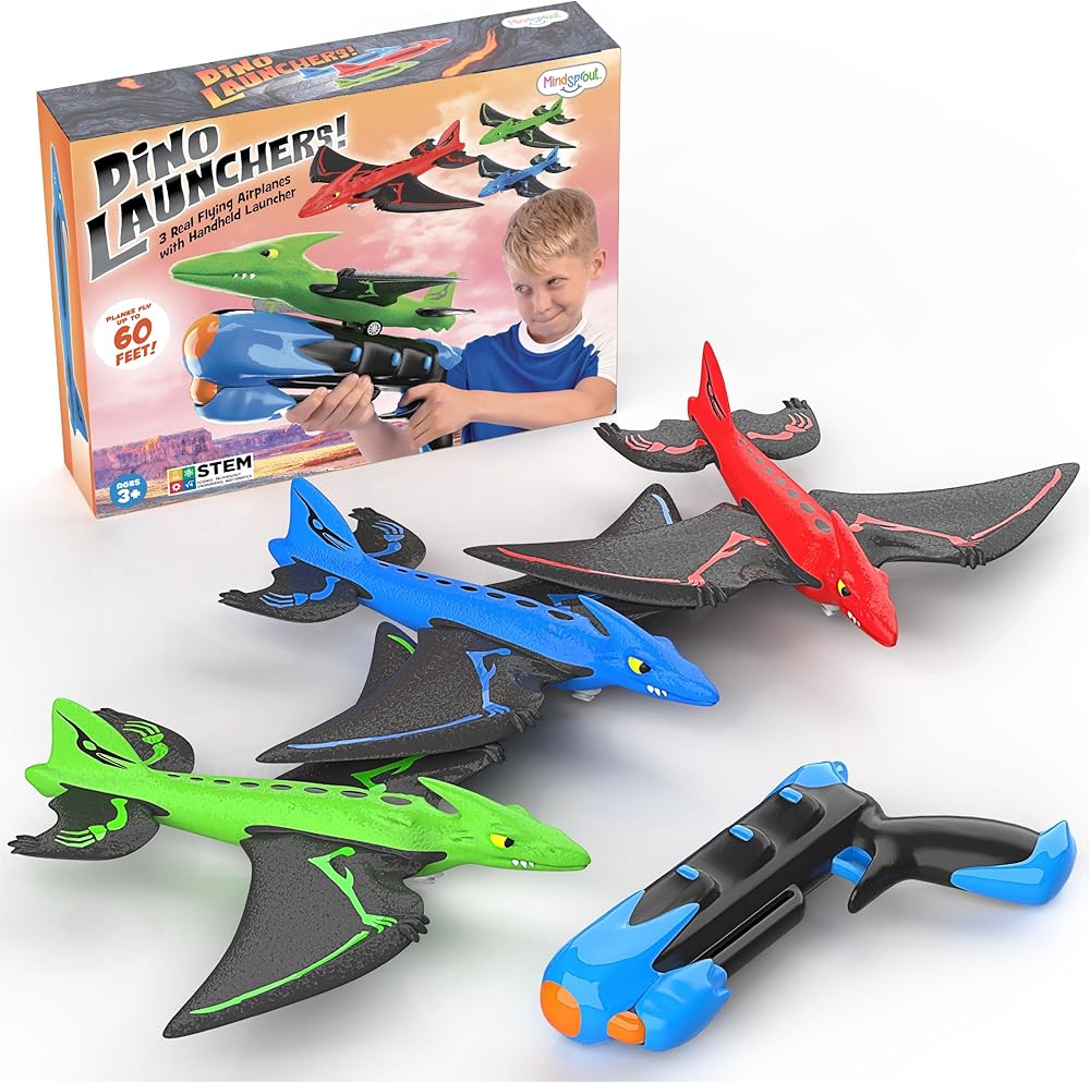 قاذفات دينو مايندسبروت - قاذفة طائرات للأطفال، هدية عيد ميلاد، للأولاد والبنات من عمر 3، 4، 5، 6، 7 سنوات - ألعاب خارجية، متعة عائلية، لعبة ديناصور، ألعاب أطفال، أطفال