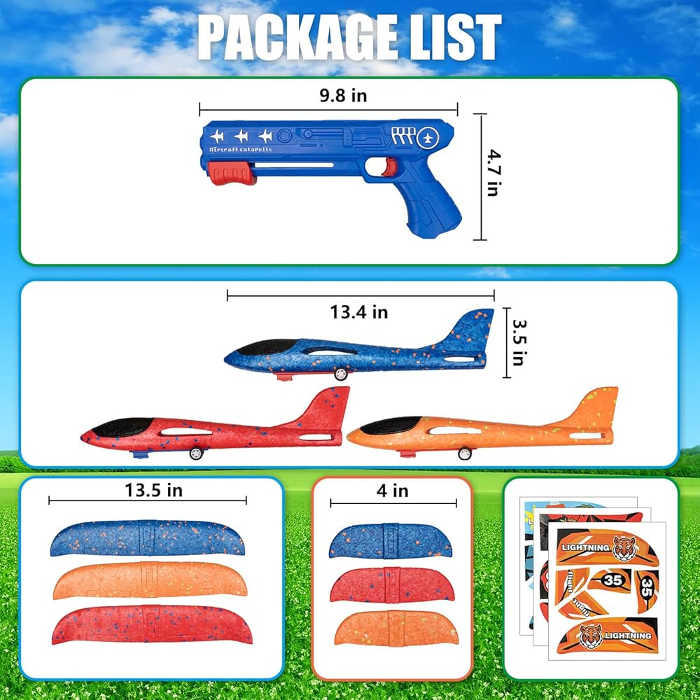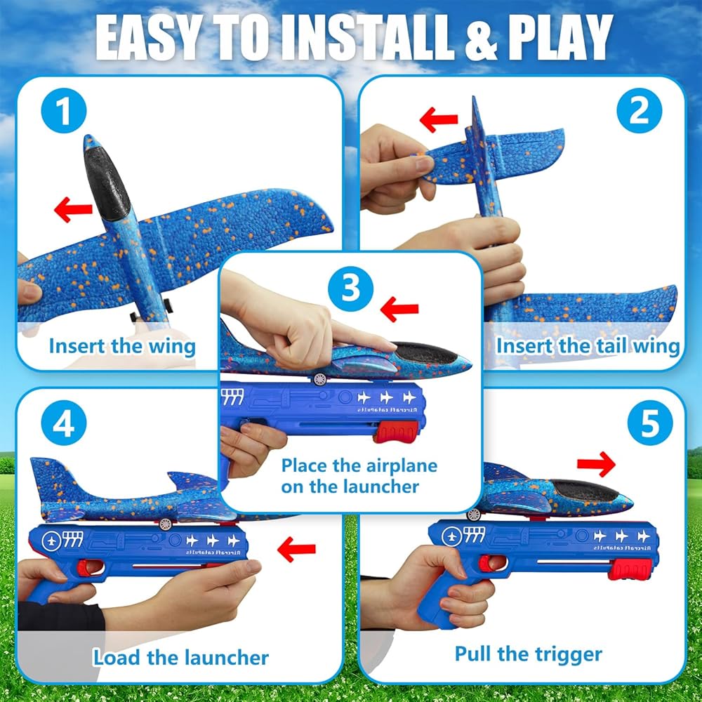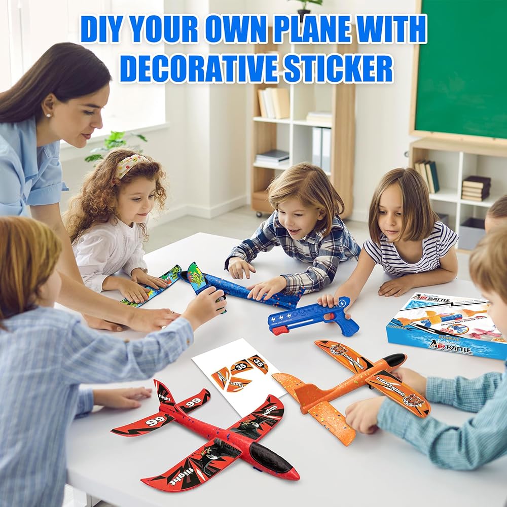 【اللعب التفاعلي ووضعين للطيران】يمكن لهذه الطائرات الرشيقة أن تنطلق في السماء بمجرد سحب زناد الإطلاق. استحوذ على اهتمام أطفالك وخيالهم، وعزز اللعب التفاعلي أثناء مطاردة هذه الطائرات الشراعية. تم تصميم طائراتنا لتوفير تجربتين طيران متميزتين - انزلاق ثابت أو طيران دوراني، اعتمادًا على كيفية تجميع الطائرة.