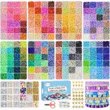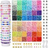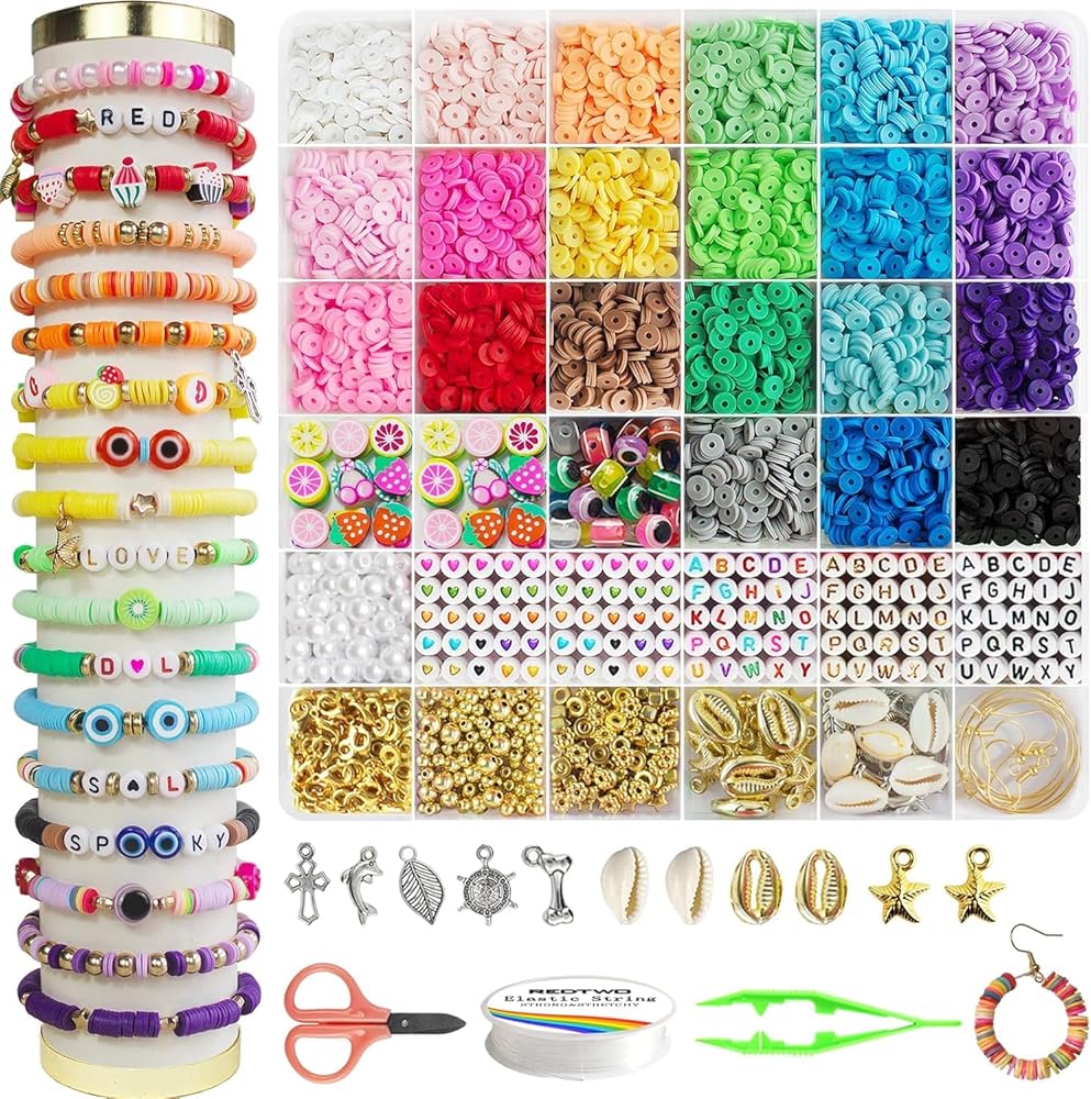 ريد تو 6200 قطعة من الخرز الطيني لصنع الاساور، مجموعة مجوهرات اساور الصداقة هيشي بوليمر مستديرة مسطحة مع دلايات وخيوط مرنة للبنات من 8-12 سنة هدايا للاطفال
