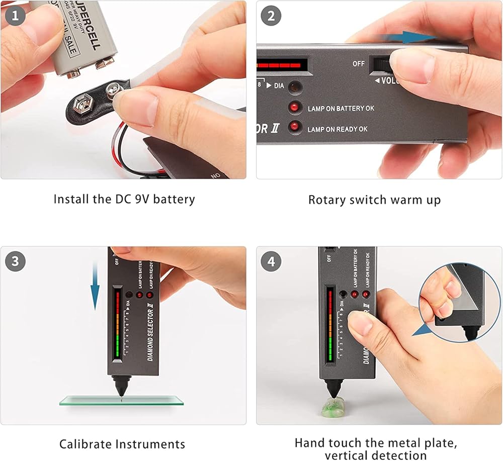 • الاستخدام: إذا كان حجر الإيدلستون هو الماس الحقيقي، سيتم عرض اللون الأخضر على الماس 2. إذا كان المستخدم يرتبط المعدن بالحجر الموصل، فإنه سيصنع حجر صيفي مستمر. جهاز اختبار مويسانيت هو أداة يتم استخدامها في تركيبة مع محدد الماس 2. هذه الأداة العملية الاحترافية - السلمون والماس مع دقة عالية ، لا تحتاج إلا إلى إزالة البقع الملونة.