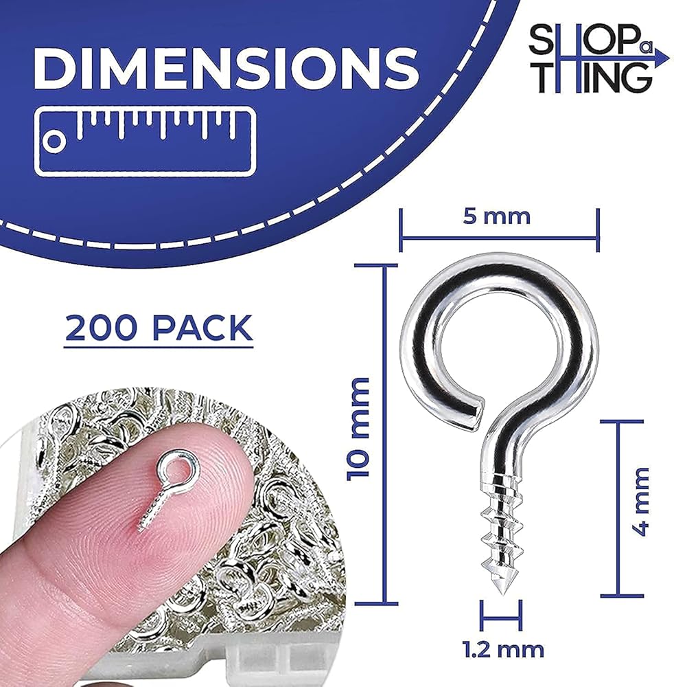 خطافات عين لولبية من A Thing - براغي معدنية شديدة التحمل مضادة للصدأ ذاتية التنصت لصناعة المجوهرات الخشبية والفنون والحرف اليدوية والخرز الساحر - 200 قطعة (فضي، 10 × 5 مم)
