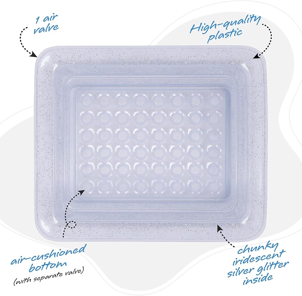 عندما تمنحك الحياة الحرارة، أخرج حمام السباحة للأطفال! إليك سبب امتلاء هذا الصيف بالكثير من الذكريات السعيدة والمبهجة. قم بنفخ حمام السباحة في الفناء الخلفي هذا في دقائق، واملأه بالماء، وأطلق العنان للأطفال، واستمع إلى الضحك يملأ الهواء. هذا الجمال كبير بما يكفي ليناسب بعض الأطفال بالداخل ويتميز بـ 3 مستويات يمكن تمييزها بسهولة. لذا، يمكنك استخدامها كوسادة رش منعشة للأطفال الصغار أو تعبئتها أعلى للأطفال الأكبر سنًا. وسيحب الجميع المظهر! تصميم شفاف يلتقي ببريق فضي قزحي الألوان لخلق مشهد مذهل.
