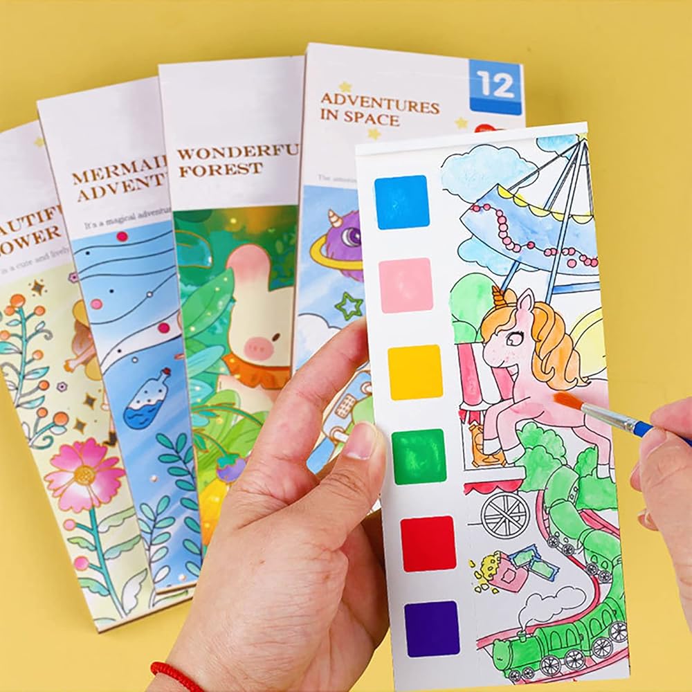 مجموعة كتب رسم بالألوان المائية مكونة من 5 قطع، كتاب طلاء بالألوان المائية، مجموعة ألوان مائية للجيب للسفر، كتاب يدوي للجيب لتخزين هدايا الهدايا للأطفال