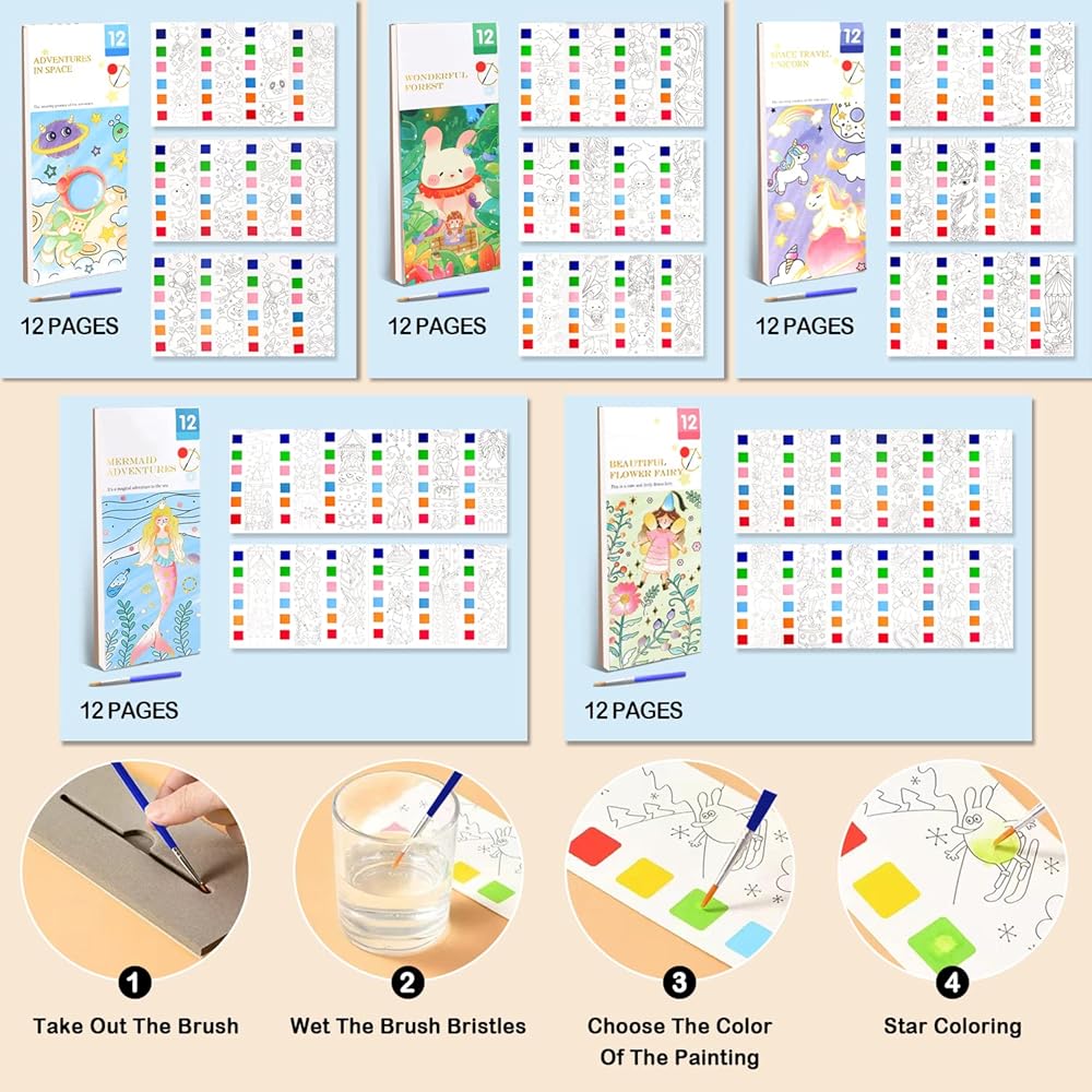 • 🖌️ هدية رائعة للأطفال من سن 3 إلى 10 سنوات - يمكنك الاختيار حسب تفضيلاتك. يُعد كتاب الرسم بالألوان المائية للجيب هدية مبهجة وتعليمية للأطفال من سن 3 إلى 10 سنوات. كما أنها أفضل هدية لعيد الميلاد لعائلتك.