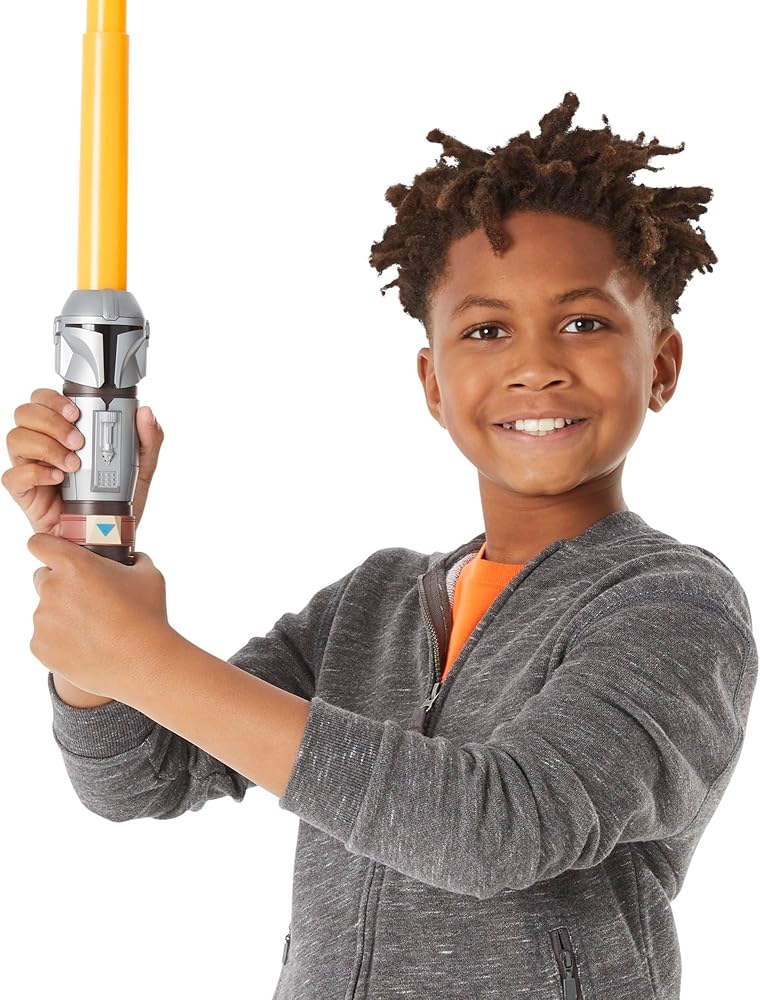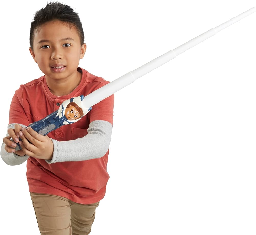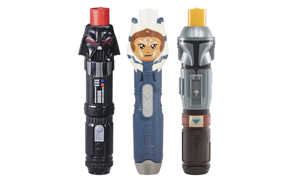 • تصميم مستوحى من الشخصية: يمكن للأطفال تمثيل مبارزات خيالية مع سيوف ستار وورز المضيئة، والتي تتميز بتصميم وديكو مستوحى من الماندالوريان وأهسوكا تانو ودارث فيدر.