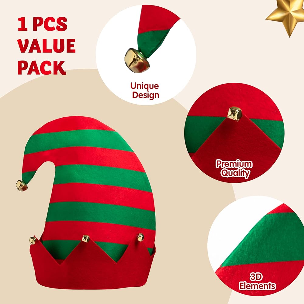 ديكور وهدية مثالية. لن يكون مطابقة ملابس العطلة الخاصة بك مرهقًا أبدًا مع قبعة عيد الميلاد الرائعة هذه. من الممتع ارتداؤه لأي شخص من أي جنس، ويمكن أن يكون بمثابة ديكور منزلي أيضًا! أظهر الجانب المضحك منك مع قبعات العفريت هذه، استمتع بهذه العطلة بحرية وسعادة مع عائلتك.