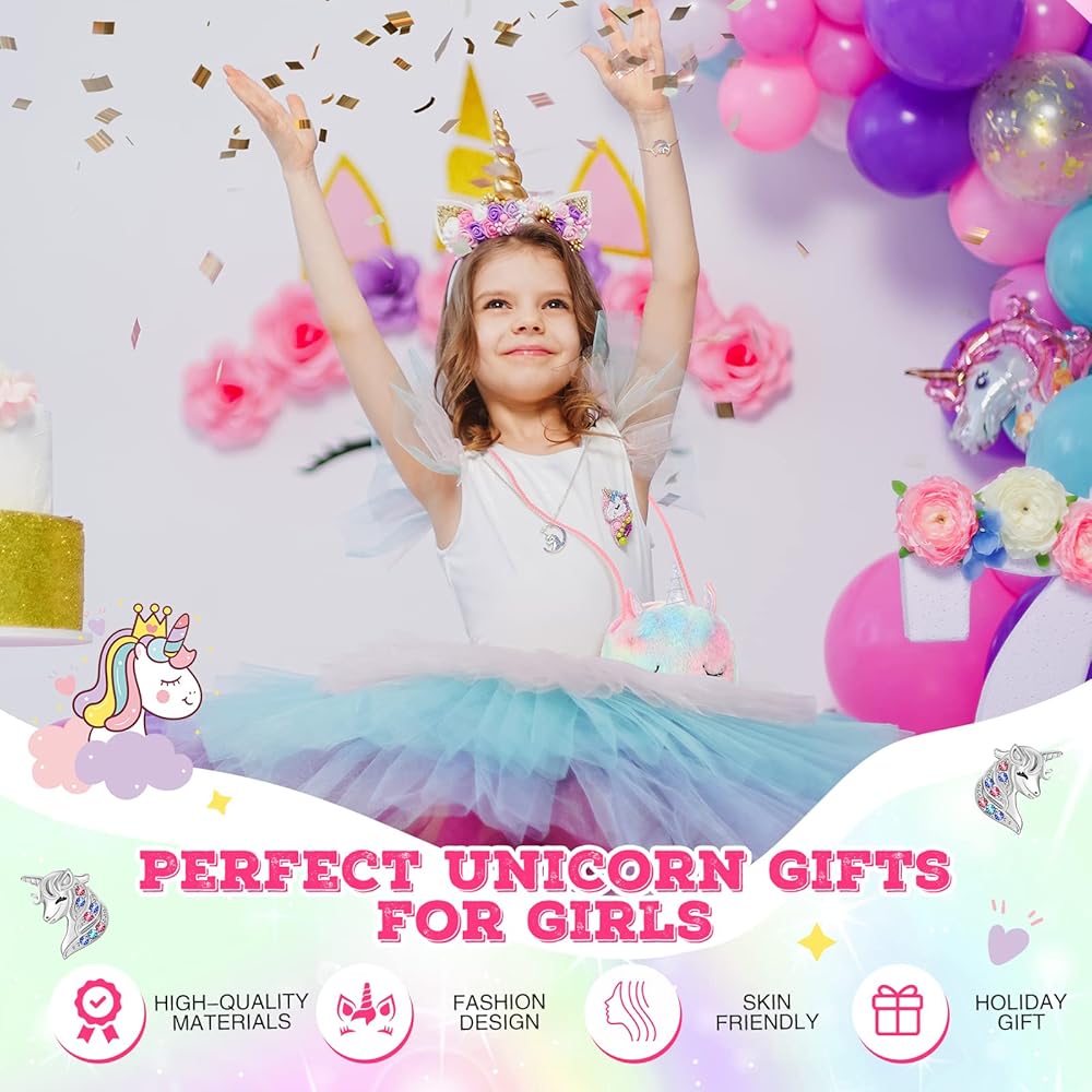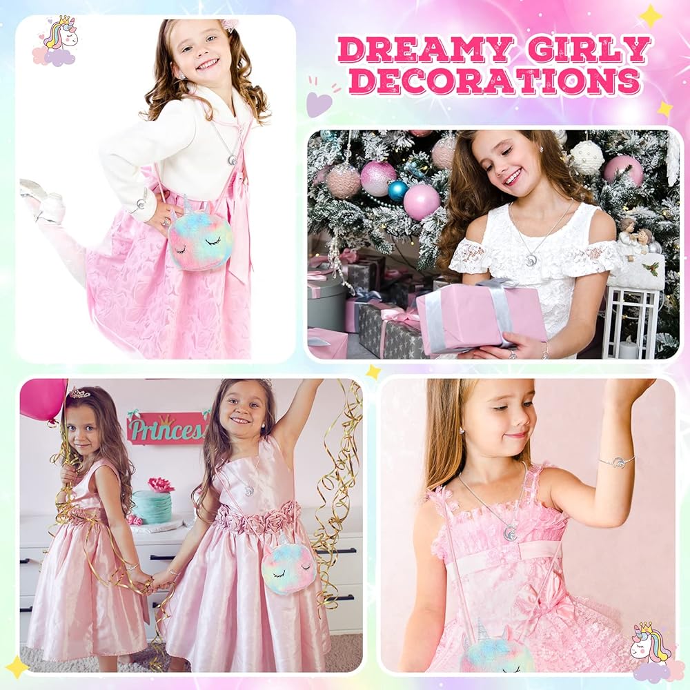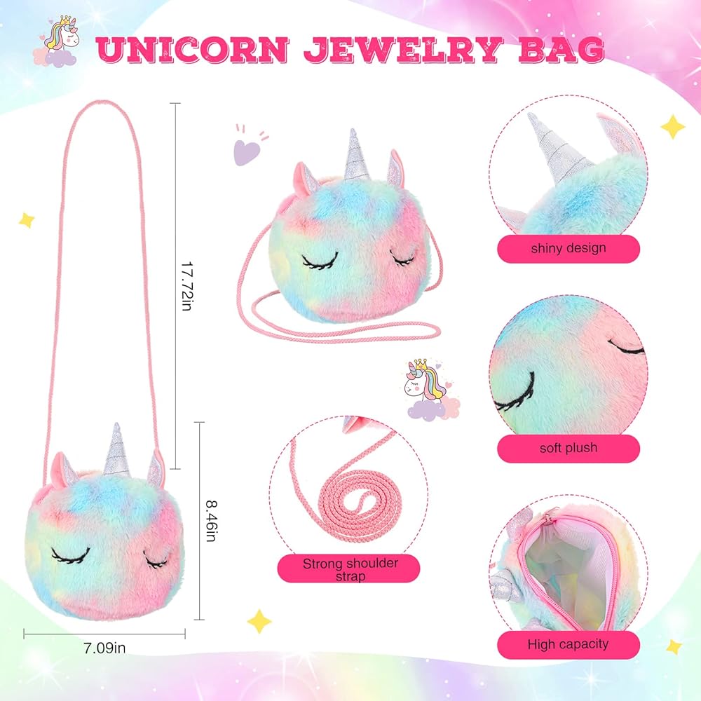 مجموعة شنط بتصميم يونيكورن للبنات الصغيرات من 5 قطع، مجموعة هدايا كروس للحفلات التنكرية وهدايا اعياد الميلاد والمجوهرات واللعب التظاهري واكسسوارات عيد الميلاد، للبنات، مقاس واحد، خليط معدني، قطيفة,