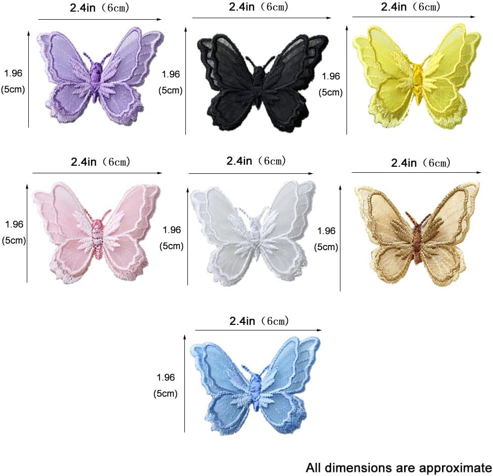 الحجم المناسب: كل زخرفة فراشة تقريبًا. 1.97 بوصة × 2.37 بوصة (5 سم × 6 سم)، حجم مناسب لتلبية احتياجاتك الديكورية. تحتاج إلى استخدام الدبابيس أو الغرز أو الغراء لإصلاحها. قد تختلف أبعاد الفراشات بألوان مختلفة قليلاً عن بعضها البعض، بسبب الصناعة اليدوية، قد يكون هناك بضعة خيوط عليها.