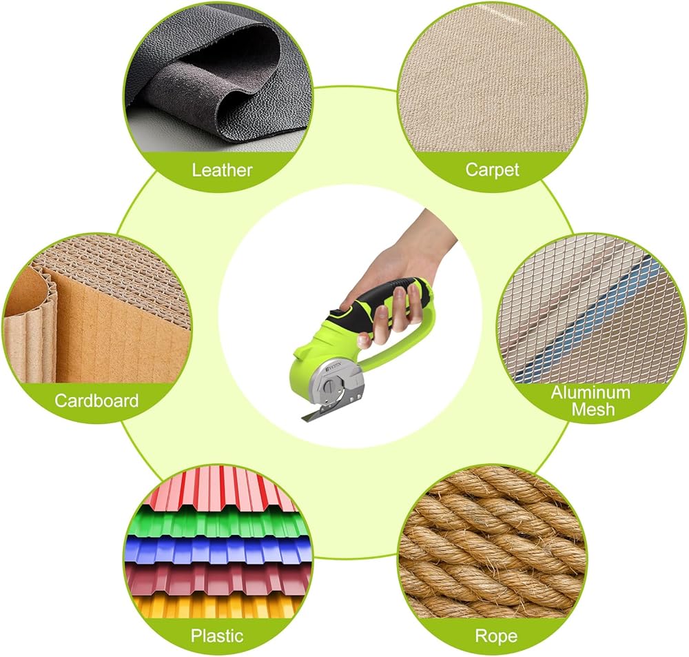 【قطع متعدد الوظائف】تم تصميم المقص الكهربائي اللاسلكي Evcitn من أجل تنوع غير عادي، مما يسمح لك بقص مجموعة متنوعة من المواد دون عناء، بما في ذلك الورق والتعبئة البلاستيكية والقماش والكرتون والجلود والقماش والسجاد وورق الحائط وشبكة الأسلاك، أكثر، يصل سمكها إلى 1/4 بوصة.