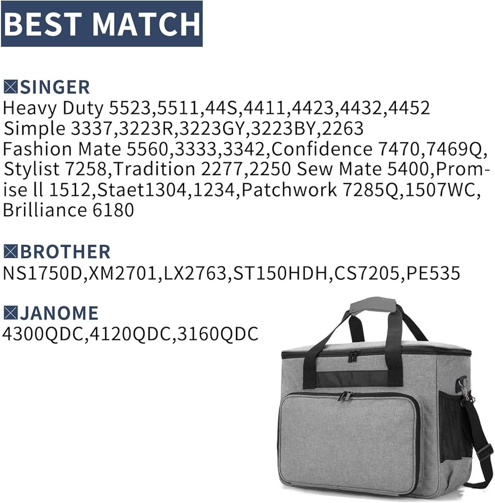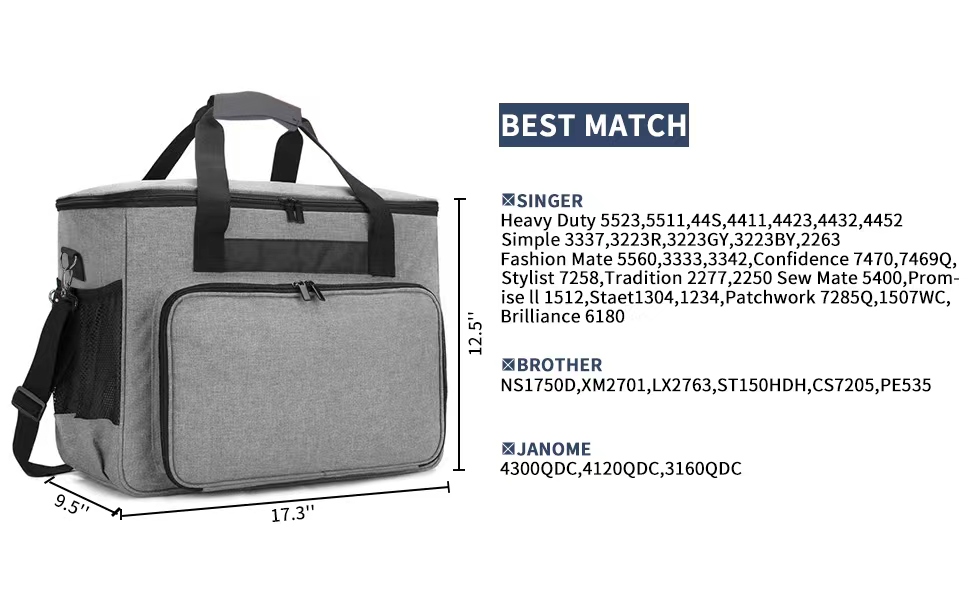 • مساحة تخزين كبيرة - الأبعاد: 17.3 × 12.5 × 9.5 انش. الجيب الرئيسي الواسع يناسب معظم ماكينات الخياطة ذات الحجم القياسي ومتوافق مع سينجر وبراذر وجانوم. يوفر التصميم المعقول والجيوب المخصصة المتعددة مساحة واسعة لحمل عناصر الخياطة التي قد تحتاج إلى تنظيمها. (الحقيبة فقط)