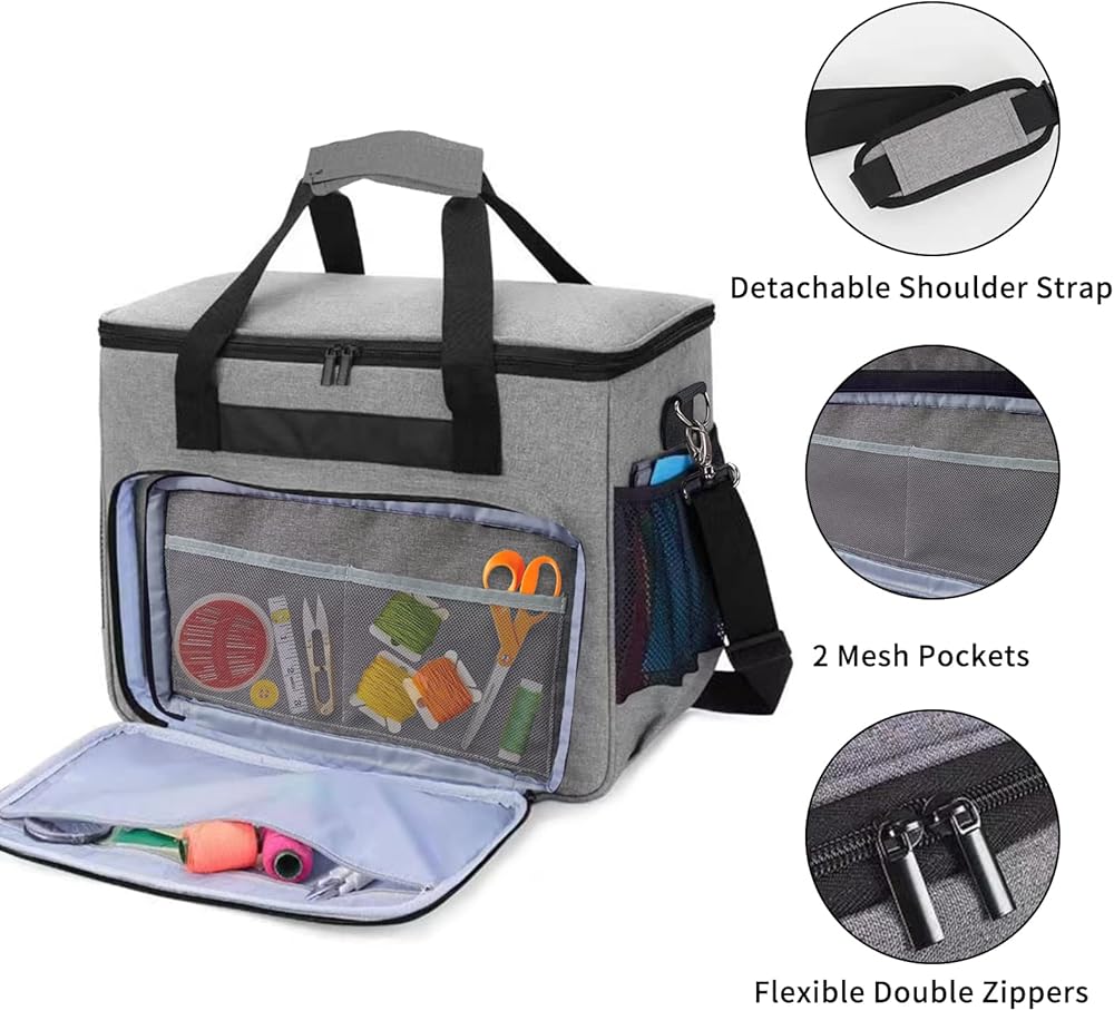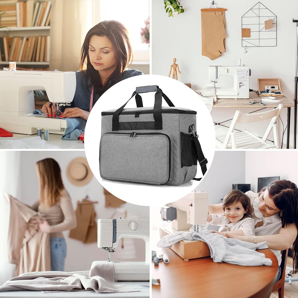 حقيبة ماكينة الخياطة من ويستيب، حقيبة ماكينة الخياطة مع جيوب متعددة وحزام كتف قابل للتعديل، حقيبة حمل عالمية متوافقة مع معظم ستاندرد سينجر وبراذر وجانوم والاكسسوارات، رمادي