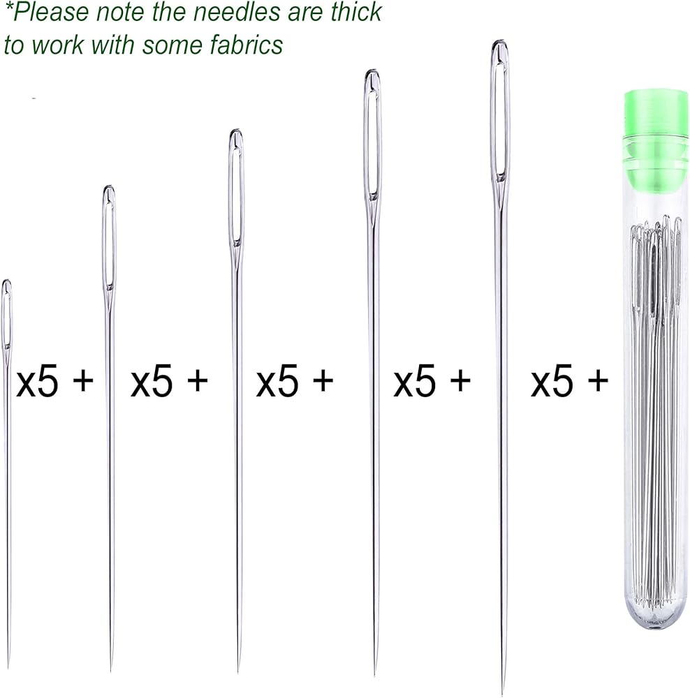25 إبرة خياطة كبيرة للعين - 5 أحجام إبر خياطة يدوية كبيرة للعين في أنبوب تخزين شفاف