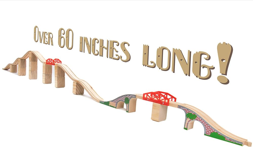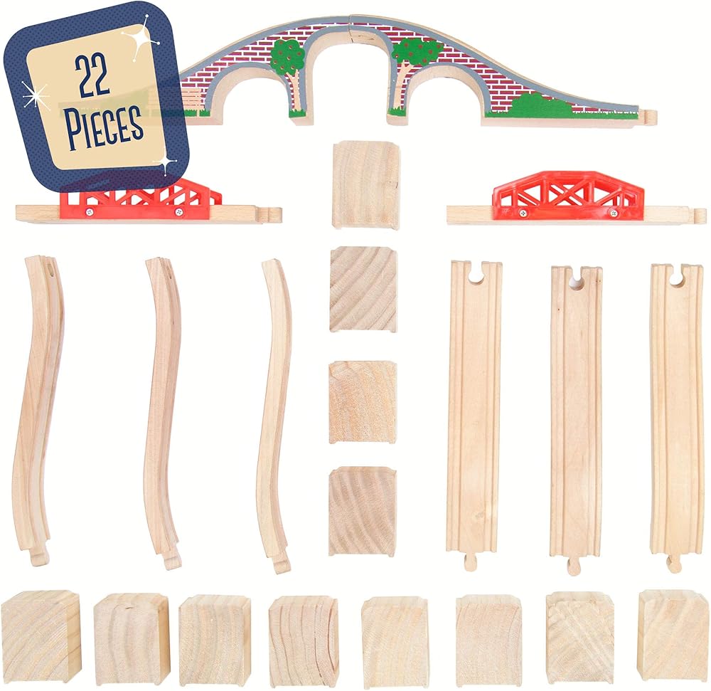 كن مبدعًا مع تصميمات مسارات القطار الخاصة بك مع قطع وجسور التلال الصاعدة! تتضمن مجموعتنا اثنتين وعشرين قطعة خشبية تتميز بجسر على السكك الحديدية وجسرين من الطوب وستة مسارات تلال تصاعدية واثني عشر رافعة. هذه المجموعة الفاخرة تكمل تمامًا العلامات التجارية الرئيسية لألعاب القطار وتضيف بعض الشخصية إلى أي تصميم للسكك الحديدية! تسمح لك الجسور ذات المستويين بالقدرة على الجري في مسار القطار أسفل الجسر. لا مزيد من القاطرات التي تسير على نفس مسارات السكك الحديدية المستقيمة، سيكون للسكك الحديدية بعض التلال والجسر للحفاظ على الأشياء ممتعة ومنتعشة! إنها الإضافة المثالية للعبة هواية الأطفال الصغار الكلاسيكية، سيلعب طفلك لساعات طويلة. تشو تشو! (لا يعمل مع قطارات توماس الأكبر مثل المركبات المزودة بمحرك، ولكنه يعمل مع أحجام القطار الكلاسيكية).