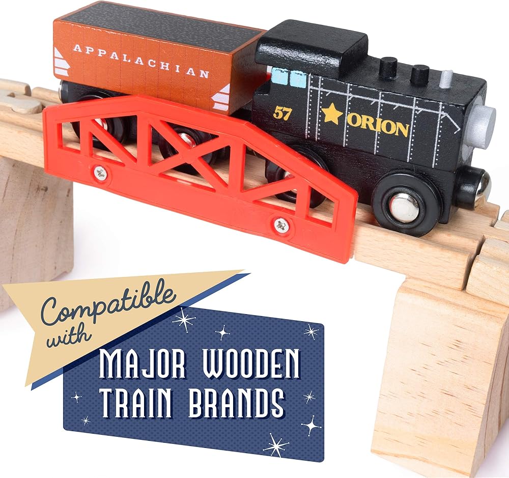 أضف بعض الارتفاع إلى صندوق أدوات القطار الخشبي الخاص بك وقم ببناء جسر السكك الحديدية المخصص الخاص بك! استخدم الرافعات للرفع السريع، أو قم بتكديسها مرتين لإنشاء خط جبلي فاخر.