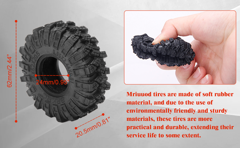 【High quality materials】 These 1.0 "crawler tires are composed of soft rubber and foam pads. Because of the use of environmentally friendly and solid materials, these tires are more practical and durable. In addition, high-quality materials make our products have high wear resistance, so they have a long service life.