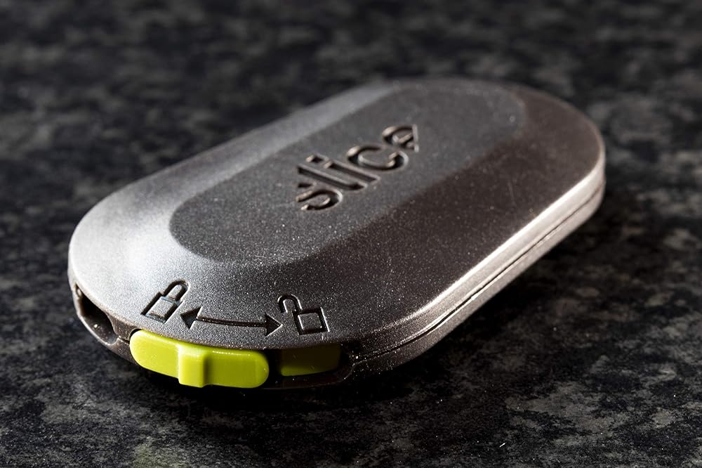 شريحة 10514 قطاعة صناديق صغيرة، فتاحة العبوات والصناديق، شفرة سيراميك آمنة تتراجع تلقائيًا، تبقى حادة حتى 11 مرة أطول، اليد اليمنى أو اليسرى، سلسلة مفاتيح، مغناطيسية، عبوة من 1