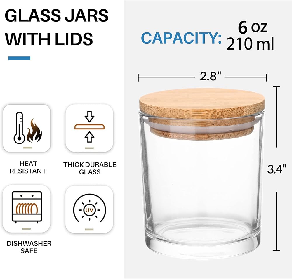 【متعدد الأغراض 】- السعة: 6 أونصة (210 مل)، الارتفاع: 3.66 بوصة (9.3 سم)، القطر: 3 بوصة (7.7 سم). يمكنك أيضًا استخدامها لتخزين الزهور المجففة وأملاح الاستحمام والزيوت العطرية وما إلى ذلك. يمكن استخدام هذه البرطمانات الزجاجية الفارغة على نطاق واسع لصنع شموع الصويا ومستحضرات التجميل التي تصنعها بنفسك، أو تخزين المراهم والكريمات والمراهم والملح والبلسم والعينات والشاي الخرز والأعشاب وما إلى ذلك لتلبية احتياجاتك.
