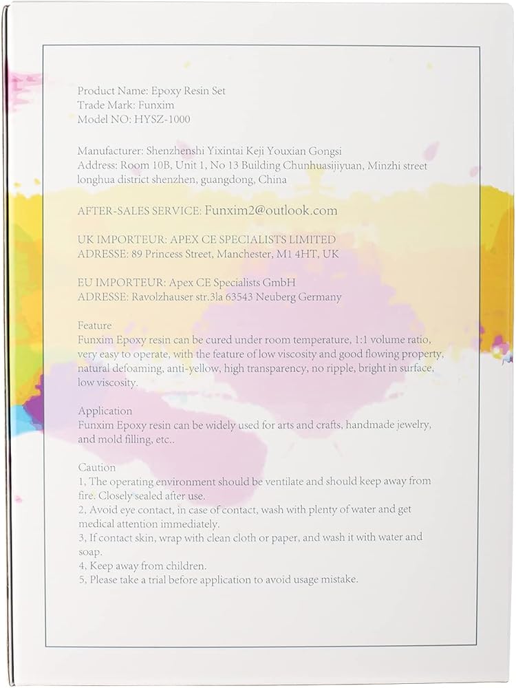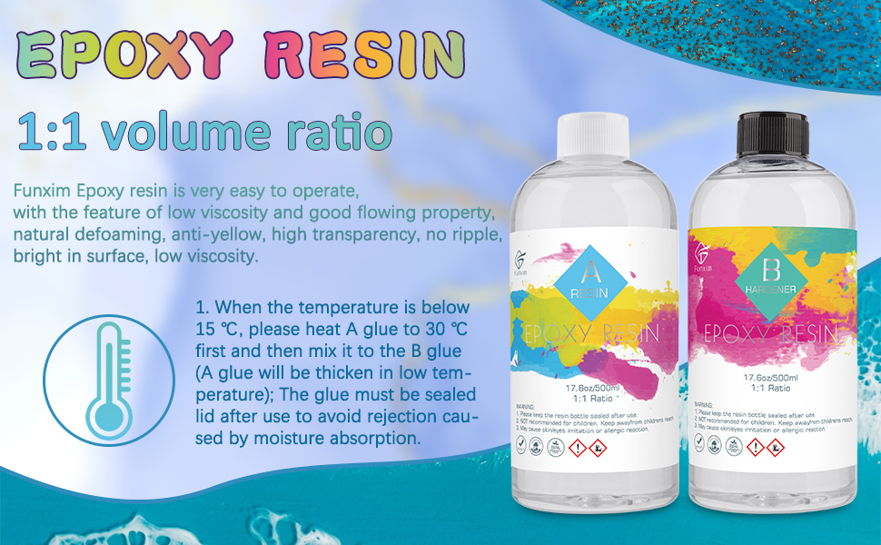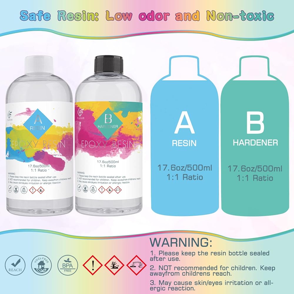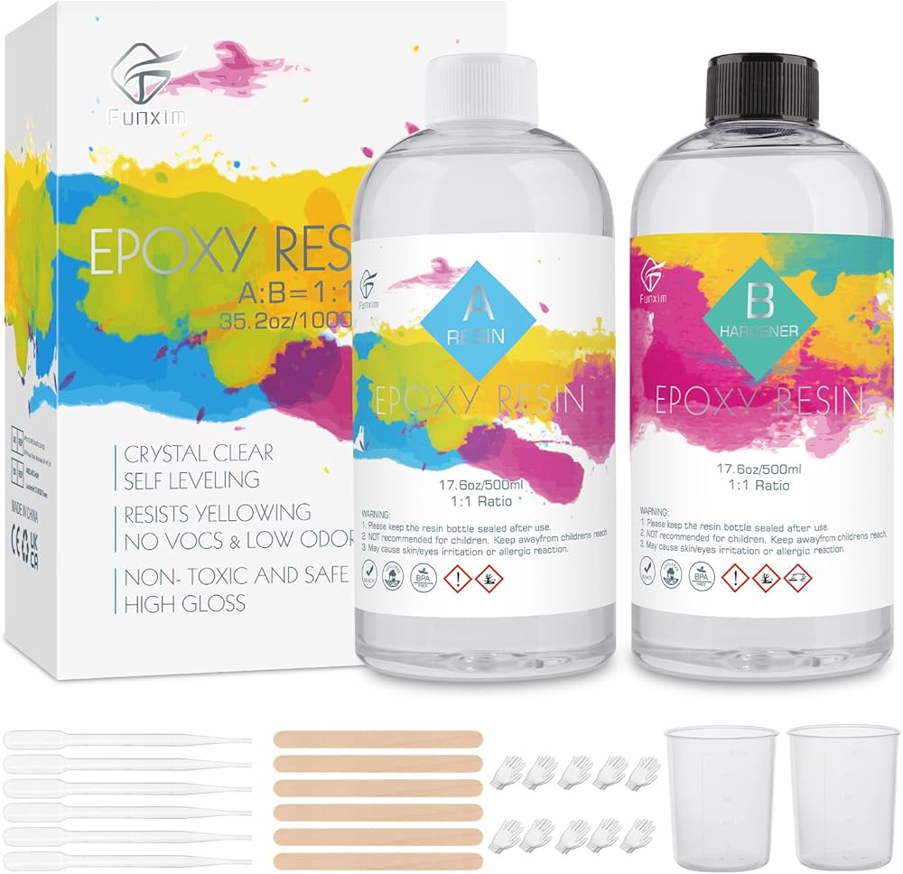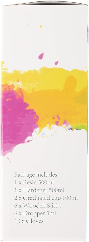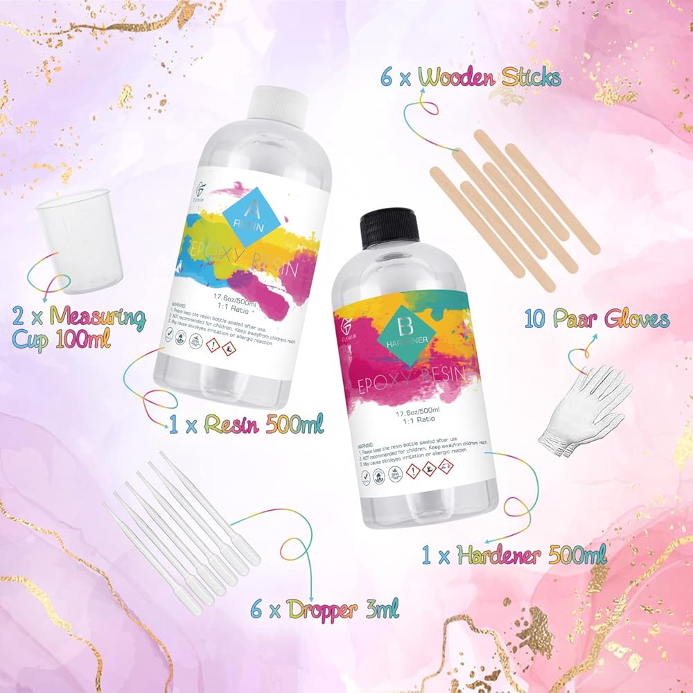 【مجموعة راتنج إيبوكسي فونكسيم】: تحتوي العبوة على 500 مل من الراتنج ومقوي 500 مل، و6 أعواد خشبية، و2 أكواب قياس 100 مل، وقطارة 6 × 3 مل، و10 أزواج من القفازات. تحتوي المجموعة على الأدوات التي تحتاجها. سهل الاستخدام.