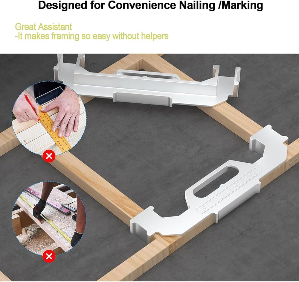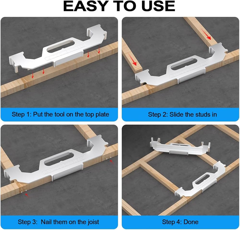 【Easy To Use】The framing stud layout tool is easy to use. Acts as a jig, helping you nail the frame on the top plate with ease. Even if you're not a professional carpenter, you can achieve professional-grade results with the tool.