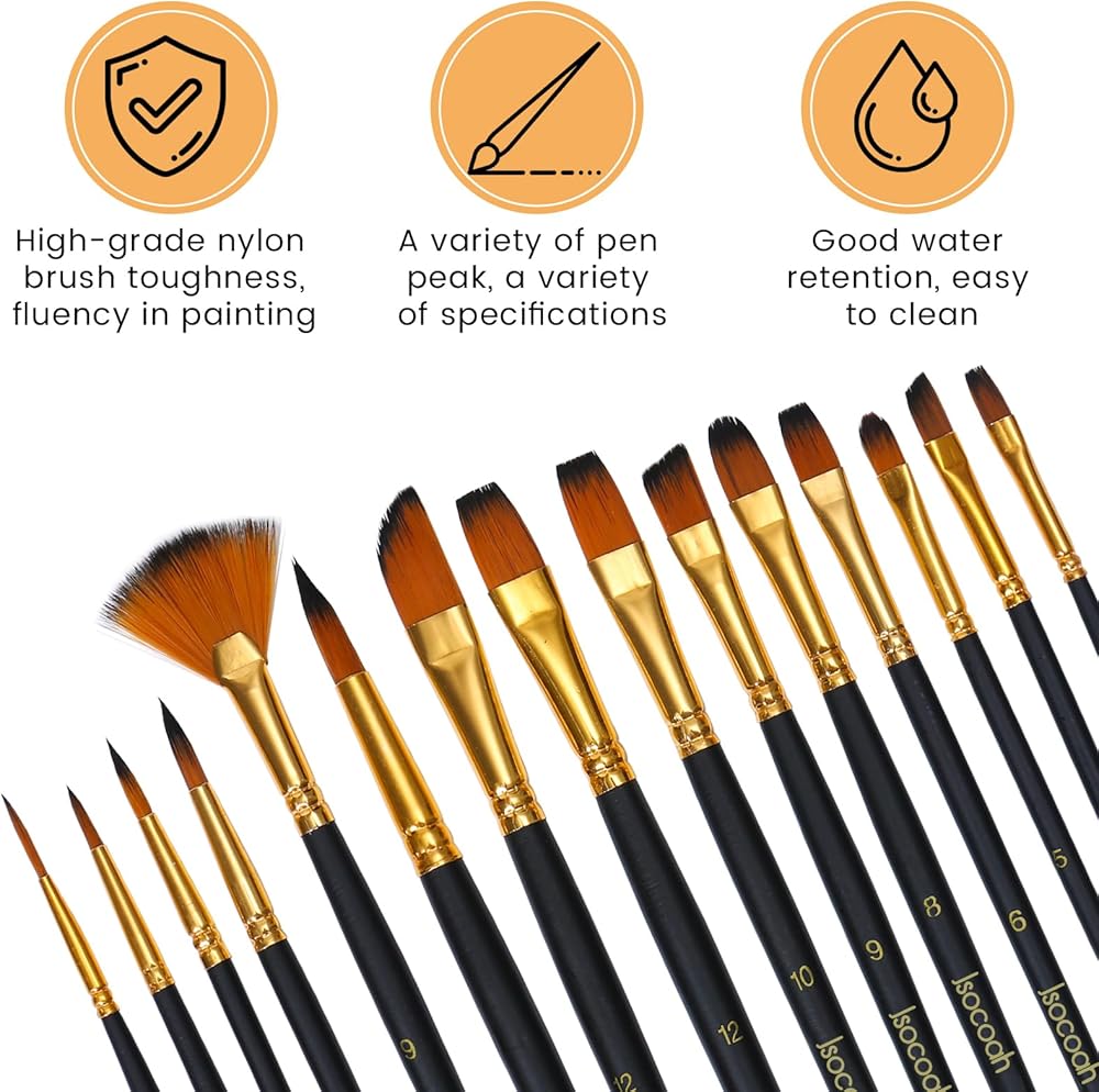 مجموعة فرش طلاء مكونة من 15 قطعة: تأتي كل عبوة مع 15 فرشاة طلاء تتضمن مجموعة متنوعة من فرش الطلاء ذات الرأس المائل والطرف الدائري وفرش الطلاء ذات الأطراف الدقيقة لتوفير الملاءمة المثالية للأطفال والمراهقين والبالغين وأي شخص آخر حتى تتمكن من الرسم والتلوين والتعبير عن إبداعك.