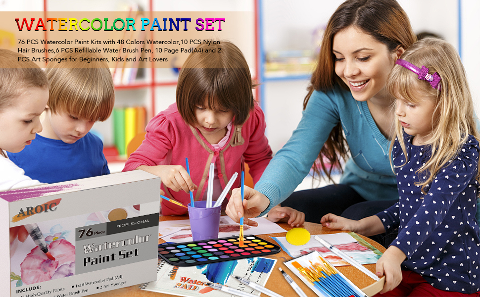 مجموعة ألوان مائية مكونة من 36 لونًا، مجموعة ألوان مائية من AROIC مع 10 فرش من النايلون و6 فرش مياه قابلة لإعادة الملء. مثالية للبالغين والأطفال والفنانين المبتدئين.