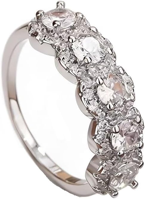 النمط: خاتم هالة كلاسيكي من الأحجار الكريمة مع خمسة أحجار رئيسية جنبًا إلى جنب، مما يلمع هالة حقيقية تشبه الماس.