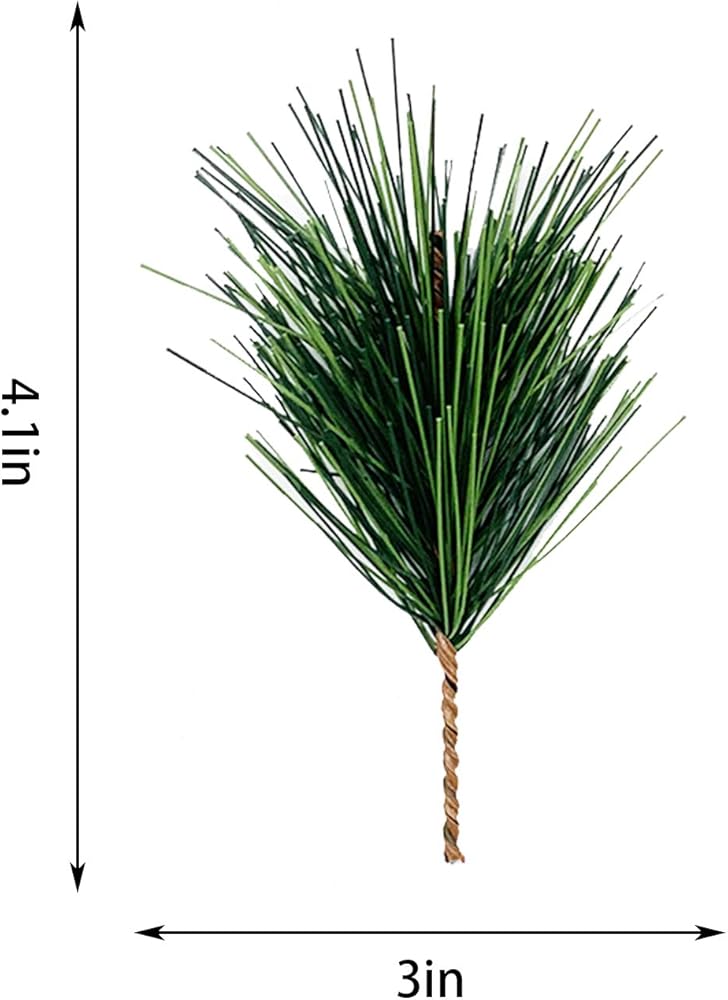 الحجم المناسب: حجم إبر الصنوبر الاصطناعية هذه هو: 4.0 × 2.0 بوصة، وكل إبرة صنوبر لها ثلاثة فروع، حجم مثالي مناسب للديكور الداخلي والخارجي.