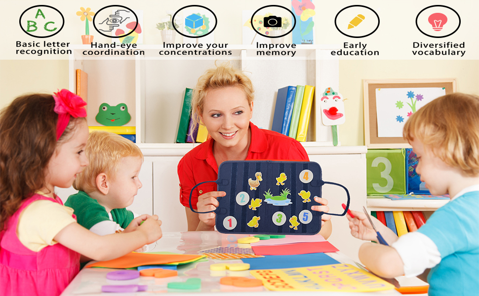 ممتعة للأطفال الصغار: أكثر من 140 قطعة قصة من اللباد في العبوة، كل قطعة من اللباد بأسلوب مختلف. فهي ذات شكل رائع وملونة. وهي مقطوعة مسبقًا إلى حجم سهل الاستخدام ومريحة للأطفال الصغار للإمساك بها. سوف تجذب موضوعات الحيوانات الرائعة انتباه الأطفال الصغار. انتباه الطفل وتبهرهم بعمق. كما يمكن استخدامها كأدوات تعليمية لرياض الأطفال والفصول الدراسية بين المعلمين والطلاب.