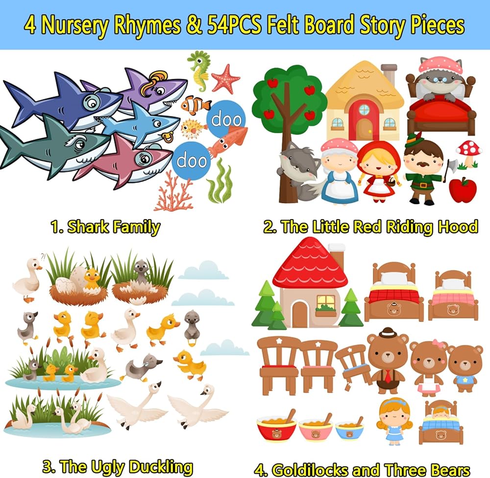 مجموعة قصص رائعة من اللباد/الفانيلا: تتضمن مجموعة لوحة سرد القصص من اللباد/الفانيلا حقيبة يد محمولة واحدة من اللباد و12 قطعة من اللباد ذات طابع قافية الحضانة. عائلة القرش؛ عجلات على الحافلة؛ خروف أسود؛ الأرنب والسلحفاة؛ 5 بطات صغيرة؛ البنغو. هيكوري ديكوري دوك، هامبتي دمبتي، إتسي بيتسي سبايدر، 5 قرود صغيرة تتأرجح في الشجرة، ثلاثة خنازير صغيرة، رجل خبز الزنجبيل. كلها أغاني الأطفال المفضلة والقصص المضحكة لمرحلة ما قبل المدرسة والأطفال الصغار. إنها أداة رائعة للعب بها الأطفال.