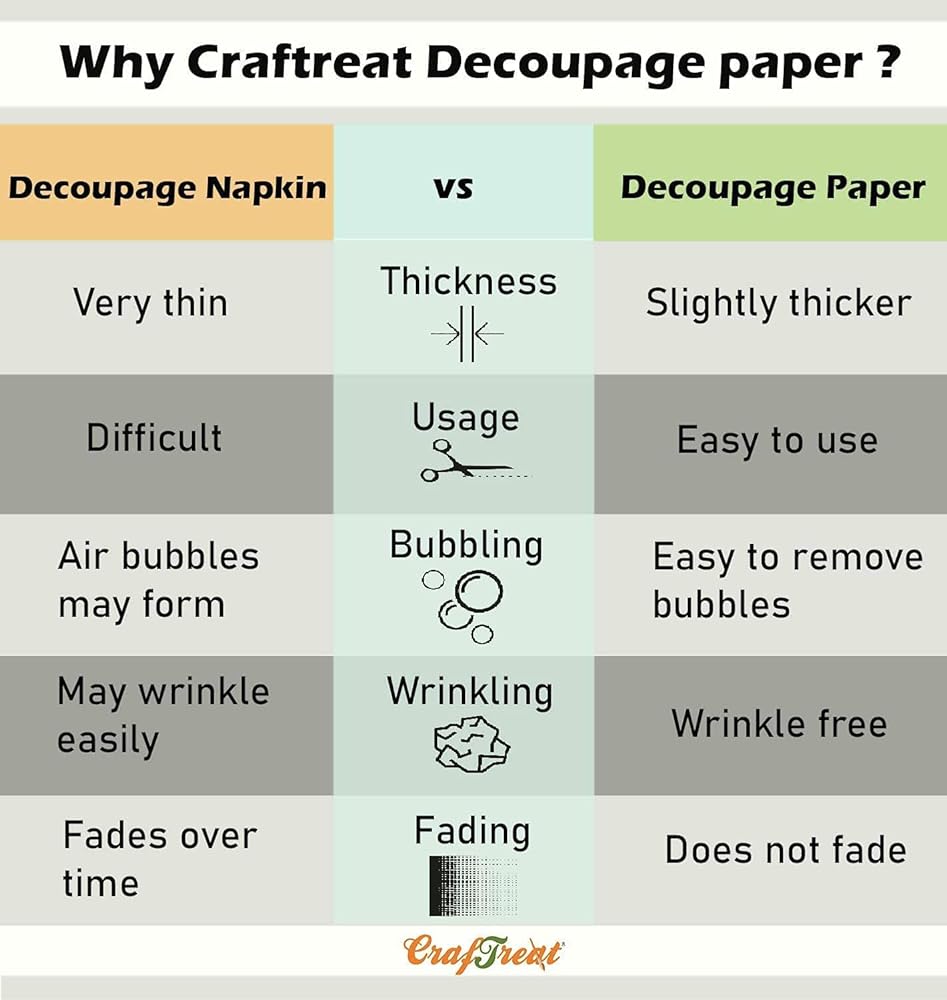• أفضل هدية لمحبي الحرف اليدوية: ستكون عبوات ورق كرافت تريت Decoupage أفضل هدية يمكنك تقديمها لنفسك أو لأي محب للحرف اليدوية. إنها متعددة الاستخدامات لأي سطح وحجم مثالي للعديد من القواعد.